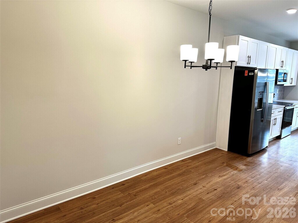 Brand New Luxury Ranch Duplex - Modern Living Near Charlotte - Be the first to call this stunning,new construction ranch-style duplex home. Offering a perfect blend of high-end luxury and everyday convenience,this property is ideally located near Charlotte and the city's premier dining,professional sports,and entertainment. The interior features an open-concept floor plan characterized by airy 9-foot ceilings,luxury vinyl plank flooring,and sleek modern black hardware throughout. Ceiling fans are installed in all bedrooms and the main living area to ensure year-round comfort. The designer kitchen,which opens seamlessly to the dining and living areas,is equipped with white shaker cabinetry featuring soft-close drawers,a large center island,and a dedicated pantry. It is beautifully finished with quartz countertops,a tile backsplash,and a full four-piece stainless steel appliance package. The spacious primary suite serves as a private retreat,offering a large walk-in closet and an ensuite bathroom complete with dual-sink vanities and a custom floor-to-ceiling tile walk-in shower. Two secondary bedrooms share a convenient hallway bathroom featuring a tiled tub/shower combination,and the dedicated laundry closet includes a washer and dryer for your convenience. Outside,you can enjoy a private backyard fully enclosed by a 6-foot wood privacy fence,perfect for quiet relaxation. One pet (either one cat or one dog) under 25 lbs. is permitted with a $350.00 non-refundable pet fee. Please note that the tenant is responsible for all utilities and landscaping. This property is offered in compliance with all Fair Housing Laws and NCREC requirements. MLS ID CAR4355405