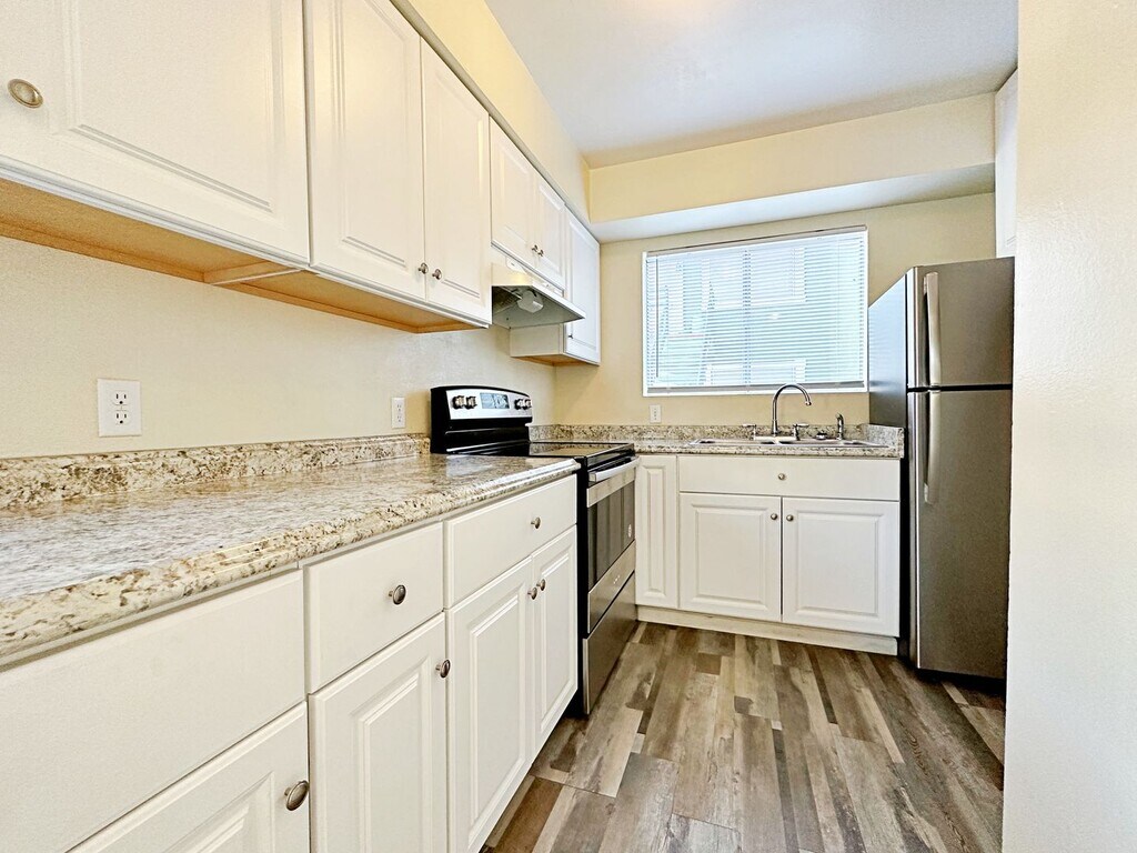 2 BEDROOM 1.5 BATH CONDO* LAMINATE WOOD FLOORING THROUGHOUT* STAINLESS STEEL FRIDGE AND NEWER STOVE IN KITCHEN* FRESHLY PAINTED* GREAT COUNTER SPACE IN KITCHEN* FITTED FOR 110V WASHER/DRYER COMBO TO HAVE LAUNDRY IN UNIT* COMMUNITY POOL* LOCATED NEAR DOWNTOWN, THE STRIP, LOADS OF SHOPPING, ATTRACTIONS, RESTAURANTS, AND ENTERTAINMENT*