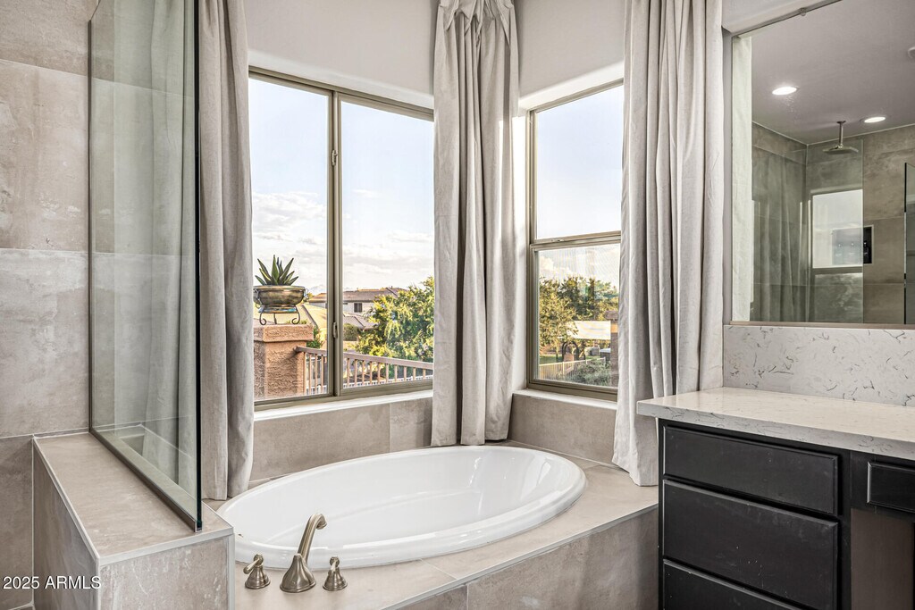 From the moment you step inside,you'll notice the attention to detail. Comfort and elegance will greet you with new tile flooring,tall ceilings,graceful archways,and an abundance of natural light. This beauty features an inviting living room,formal dining room,& a large family room enhanced by a delightful fireplace. The CHEF'S KITCHEN boasts recessed lighting,abundant cabinetry with crown moulding,gleaming STAINLESS STEEL APPLIANCES,quartz counters,a butler's service area,a custom island with a breakfast bar,& a breakfast nook. The owner's retreat won't disappoint,showcasing a sitting room & a modern en-suite equipped with two vanities,a makeup desk,& a SOAKING TUB. All this for only $1.00 per sf. And if you prefer,you can rent it FULLY FURNISHED. You'll love this place!