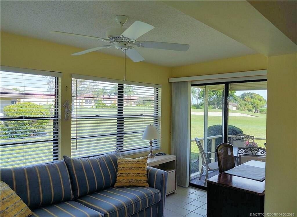 Awesome golf views of the 3rd fairway in this CBS,tastefully furnished,2bed plus den/2bath/1car carport.Relax and enjoy this lovely,bright & sunny unit,open concept,w/an updated new kitchen,& a screen porch.All age friendly.Enjoy the breezes & lifestyle.Easy access to dining,shopping,downtown Stuart,parks,& medical facilities.This spacious home offers full size washer/dryer,dishwasher,microwave,disposal,multiple TV's,queen bed in master & spare bdrm,& your den can be used as a 3rd bdrm. In excellent condition.Basic cable/wifi,lawn care,water,sewer,trash,included in rent. Electric is included but capped at $100 a mo.,any overage deducted from security. Exit cleaning fee of $300.Tenant responsible for 12% sales/tourist tax on rental. Available 07/01/25 to 03/17/26. Community pool.Memberships available for social,golf,& tennis at Miles Grant Country Club.The Intracoastal Waterway is 1/4 mile away & directly across from Peck's Lake Preserve & boardwalk to beach access.