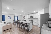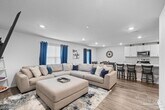 Spacious 5 bedroom,3 bath two-story home that’s big on style,space,and fun! Step inside to a bright open floor plan where the spacious living area flows seamlessly into a contemporary kitchen with tons of cabinet space and a large dining area that’s perfect for everything from weeknight dinners to holiday feasts. The first floor also offers a full bathroom,a guest bedroom ideal for visitors or an in-law suite,and a versatile flex room that can be your home office,craft room,or formal dining space. Upstairs,you’ll find four generous bedrooms including a luxurious primary suite with two walk-in closets and a private bath,plus a second full bathroom,convenient upstairs laundry,and an additional family room perfect for movie nights,gaming,or home schooling. Outside,enjoy a private backyard built for BBQs,pets,and playtime,while the neighborhood park with splash pad and walking trail adds even more ways to have fun just steps from your door. With plenty of room to spread out and a prime location,this home has everything you need to live big and live comfortably!