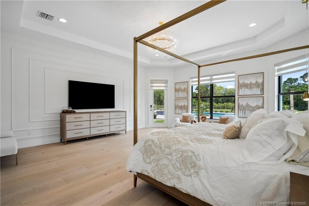 SHOWSTOPPER! If you're tired of cookie cutter,builder grade houses,then your search has ended. This 4 bedroom,4.5 bath home includes the best of everything. The kitchen features a gas cooktop w/ pot filler,Critsallo granite countertops,island and backsplash with back lighting and top of the line appliances. Primary suite is an oasis from the everyday featuring a beautiful view and a spa like master bath. Two large walk-in closets,have been custom designed to hold all your clothing and accessories. Secondary bedrooms are on the opposite side of the home,completing the three-way split floorplan. Unique,high-end light fixtures fill the open concept living areas that lead out to the pool deck that is complete with summer kitchen,saltwater pool,and extensive fenced backyard.