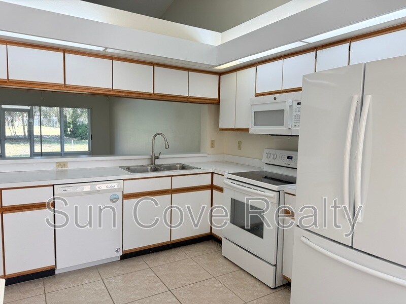 Welcome to this beautifully maintained 2-bedroom, 2-bath villa-style home located in the heart of Lake Bernadette. This single-story residence offers and open floorplan with plenty of light and airy living space. Home is situated on a peaceful tree-lined street with wide sidewalksperfect for morning walks or evening strolls. Inside, youll find vaulted ceilings, skylights, and freshly painted interiors (2025) that give the home a clean, bright, and modern feel. The spacious living area flows seamlessly into a screened-in lanai, offering relaxing views of the nearby golf coursean ideal spot to unwind. The kitchen features ample cabinetry, updated appliances including a 2023 microwave and dishwasher, and a cozy eat-in nook overlooking the front courtyard. The primary suite includes a large walk-in closet, dual vanities, and a spacious walk-in shower. A full-size washer and dryer (2018) are located in the laundry room, along with overhead cabinets for additional storage. Additional features include a water softener system located in the attached one-car garage, as well as a new garage door opener installed in 2025. Recent updates add peace of mind, including a hot water heater (2024) and regularly serviced HVAC system, most recently in 2025. This home offers comfortable, low-maintenance living with beautiful surroundings in one of Zephyrhills most welcoming communitiesdont miss the opportunity to make it your next home! Application and pet fees apply
