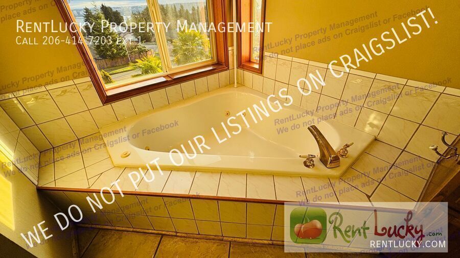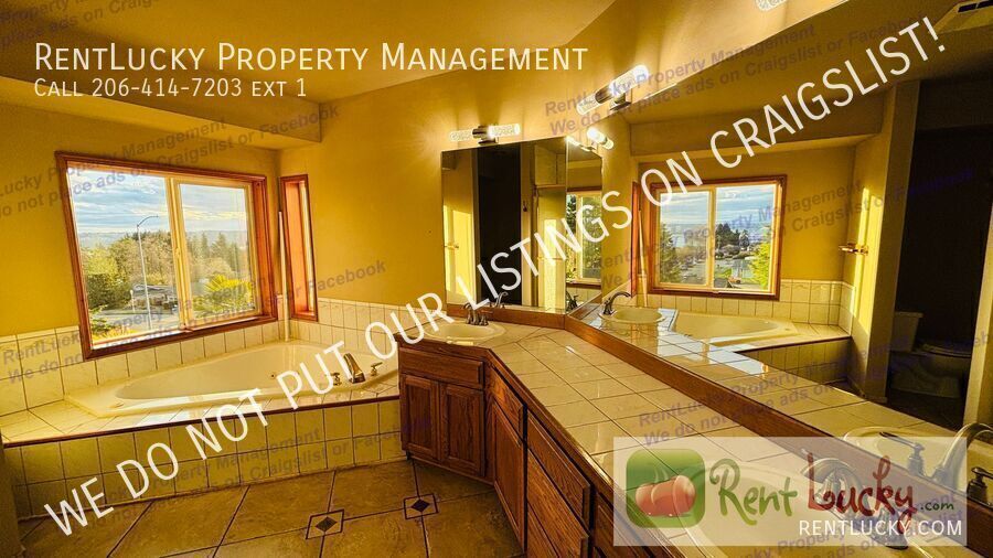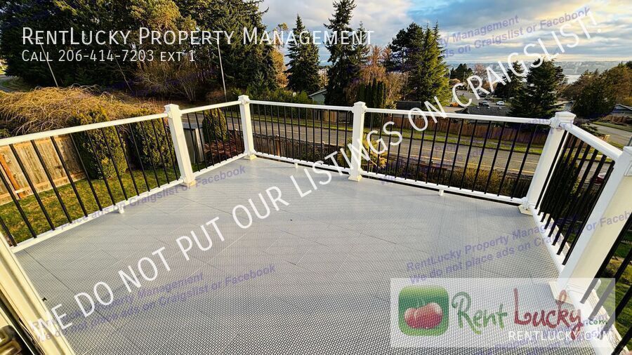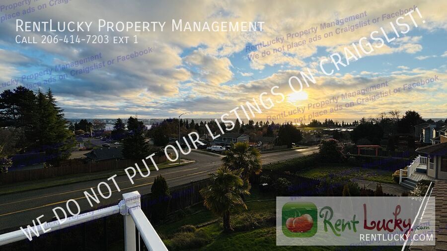This 5 Bedroom, 3 Full Bath home is nestled in coveted Harbor Ridge Estates, this exceptional home captures sweeping views of Commencement Bay and offers effortless indoor-outdoor living. Perfectly positioned near top-rated schools, acclaimed dining, boutique shopping, and scenic walking trails, it delivers both elegance and everyday convenience. Step into a welcoming foyer that opens to light-filled living spaces, where expansive windows frame uninterrupted bay and city skyline views. The open-concept design seamlessly connects the living area to a chef-inspired kitchen featuring updated appliances, generous storage, and a spacious island ideal for entertaining. The serene primary suite serves as a private retreat, complete with a spa-like en-suite bath and a private balcony — perfect for morning coffee with a view or unwinding at sunset. Outdoors, the fully fenced, professionally landscaped yard offers a tranquil escape, accented by vibrant blooms and mature greenery. Whether hosting summer gatherings or enjoying a quiet evening under the stars, this peaceful setting feels worlds away — while still close to everything. Experience refined Northwest living at its finest. Schedule your private tour today. Total Costs Rent: 4195.00 Tenant Portal: 9.99 Onboaring Fee: $350 Application Fee $55.00 per adult Tenant responsible for utilities No pets allowed _____________ BEWARE OF SCAMMERS! If you see a Craigslist OR Facebook Marketplace ad for this house at a lower price or an ad that does NOT mention RentLucky Property Management, SCAMMERS have posted the other ad. RentLucky does NOT put our listings on Craigslist NOR Facebook Marketplace. If you have been dealing with a SCAMMER, please reach out to RentLucky immediately at . TIPS & TRICKS to a Successful Leasing Experience with RentLucky! ARRANGE A TOUR: Visit our website at