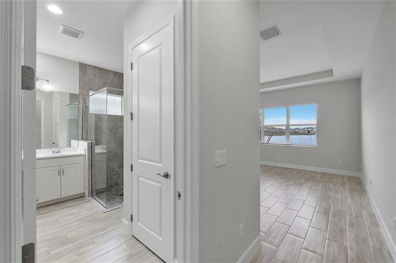 Move into this Lakefront Beauty with 5 bedrooms 5 bathrooms, and 2 car garage. Beautiful Model home with volume ceilings, a gourmet kitchen, and Quartz countertops, complete with an extended breakfast bar to bring it all together. Impact windows throughout, a huge backyard, and a lovely covered screened patio area. This secure community has an amazing Clubhouse with an outdoor patio and vacation-style amenities such as a resort-style pool, Kids play zone, Bocce Ball, Picnic Areas, and a top-of-the-line fitness center.