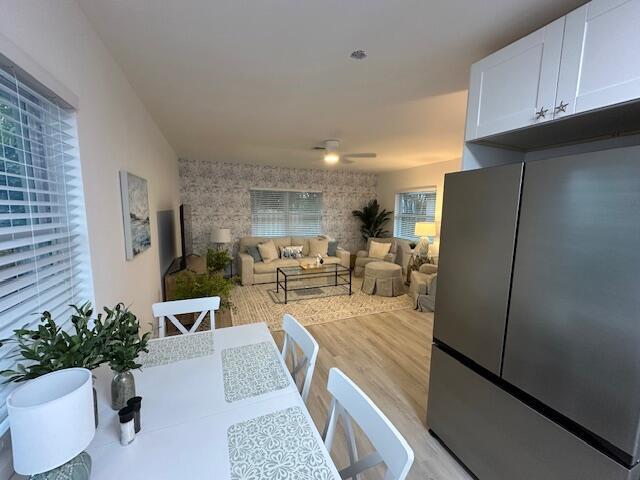 Welcome to your dream coastal retreat in North Palm Beach,Florida! This charming 2-bedroom,2-bathroom bungalow has been meticulously renovated and is fully furnished,offering a perfect blend of modern elegance and comfort. As you step inside,you'll be greeted by an open-concept living space adorned with contemporary finishes and sun-drenched rooms that exude warmth and tranquility. The gourmet kitchen boasts sleek countertops and state-of-the-art appliances,ideal for culinary enthusiasts who love to entertain. Each bedroom provides a serene escape with plush furnishings and ample closet space with the primary suite featuring a King bed and the guest a twin trundle. The updated bathrooms feature spa-like touches that promise relaxation after a day enjoying the Florida sun. The bungalow has a private patio with a lovely table and chairs and a private grill for the perfect Florida evenings. There is also a shared patio for the three bungalows to use which features a shared laundry room with full sized washer/dryer and a second patio/common area with outdoor sofas and a hot tub. Situated in an enviable location,this turnkey property allows you to embrace the vibrant coastal lifestyle effortlessly. Just minutes away,enjoy morning strolls for fresh coffee at local gems like Jupiter Donuts or savor mouth-watering meals at PA BBQ before exploring the breathtaking Intracoastal waterways nearby. Whether you're seeking a seasonal residence or a short term vacation getaway,this bungalow offers unparalleled convenience with walkability to renowned restaurants and attractions. Don't miss out on this gem. MLS ID R11149736