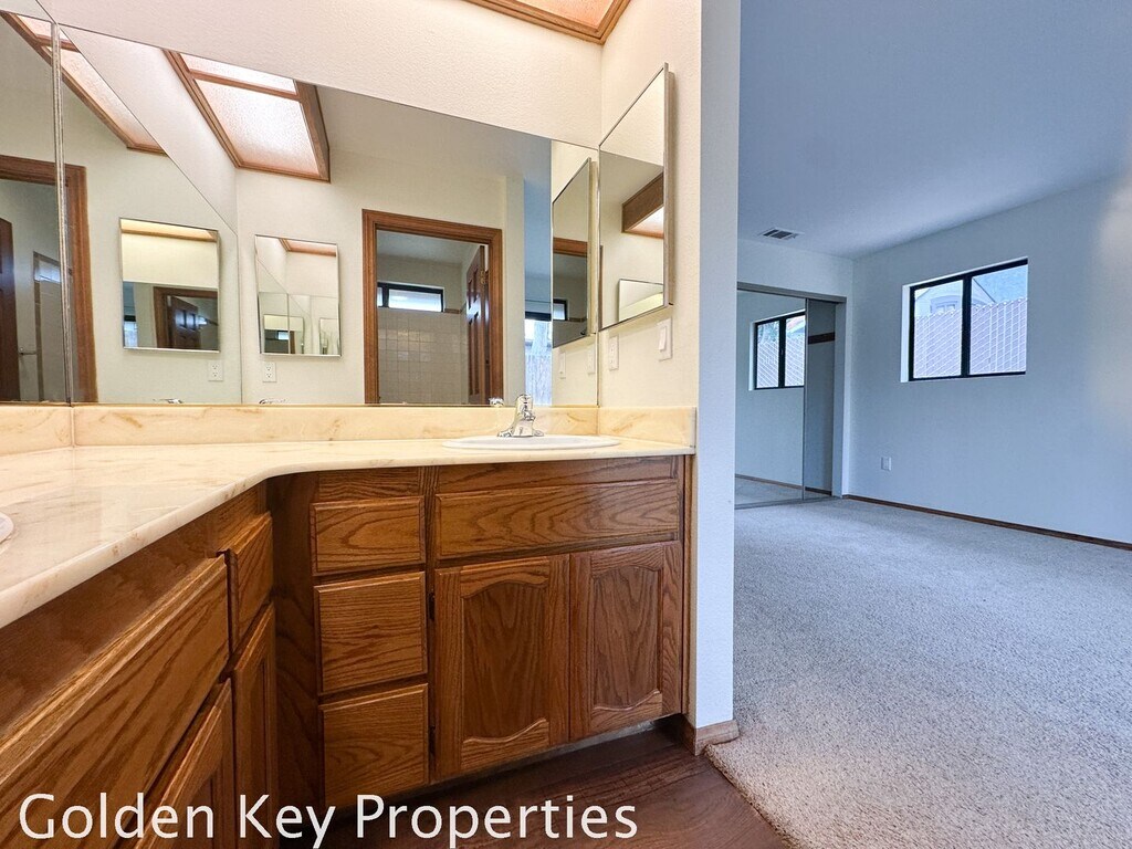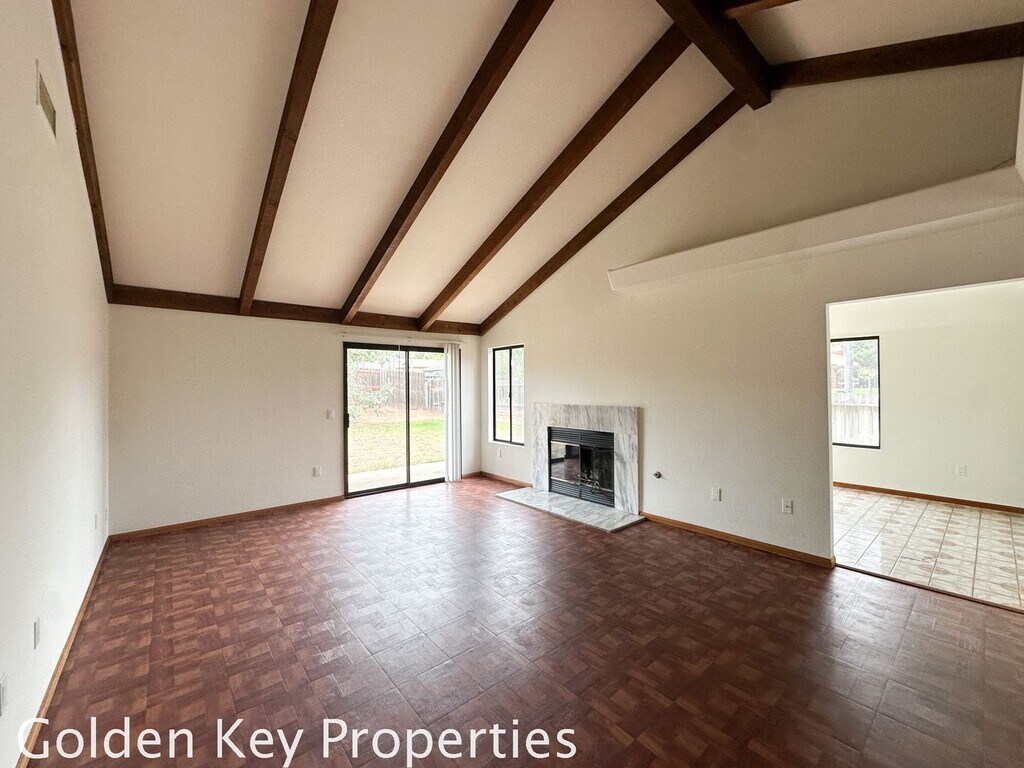 Single-level home on a large corner lot in San Marcos! 4-Bedroom / 2-Bathroom home with vaulted wood-beam ceilings, fresh paint and new window coverings throughout, separate living room and dining area, fireplace, plus ceiling fans and mirrored closet doors in each bedroom. Additional feature include a spacious backyard, two-car garage with washer/dryer hookups, extended driveway, and landscape maintenance included in the rent. One Year Lease NO PETS ALLOWED.