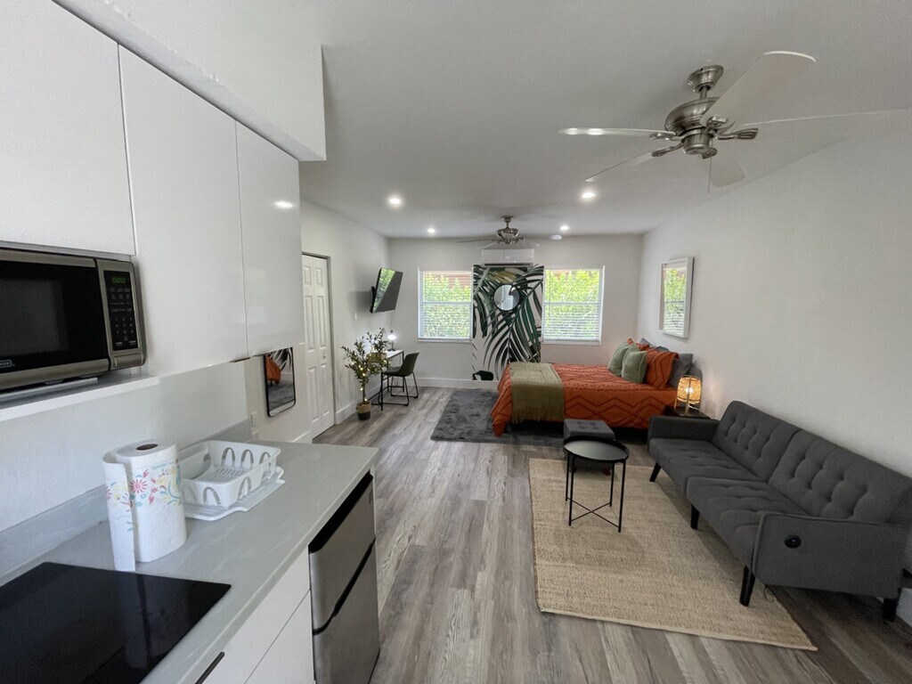 Feel at home in this ground-level, newly renovated apartment located in the vibrant Little Habana neighborhood, just two blocks away from the Miami River. This spacious unit features a new, fully equipped kitchen and offers free street parking for your convenience. The apartment includes a fully equipped kitchen with the basics needed for cooking, and each room is fitted with a Smart TV for your entertainment. Towels, shampoo, and soap are provided to ensure a comfortable stay. Early check-in and late check-out are available at an extra cost, subject to availability. A dog is allowed in the unit with an extra cleaning fee, and certain breeds are accepted based on the size of the apartment and the dog. A washer and dryer are available at the property for an additional charge. Nestled in an up-and-coming hip neighborhood, this apartment is close to everything you need. Enjoy the proximity to the Miami River and explore the lively surroundings of Little Habana. The check-in and check-out processes are fully remote for your convenience, with detailed instructions provided via direct message or through our guest portal. Check-in is completed online. Cats are not accepted in the unit. A sofa bed is available in the living room and a queen bed in the bedroom; please inform us if you need the sofa bed prepared. [SI]