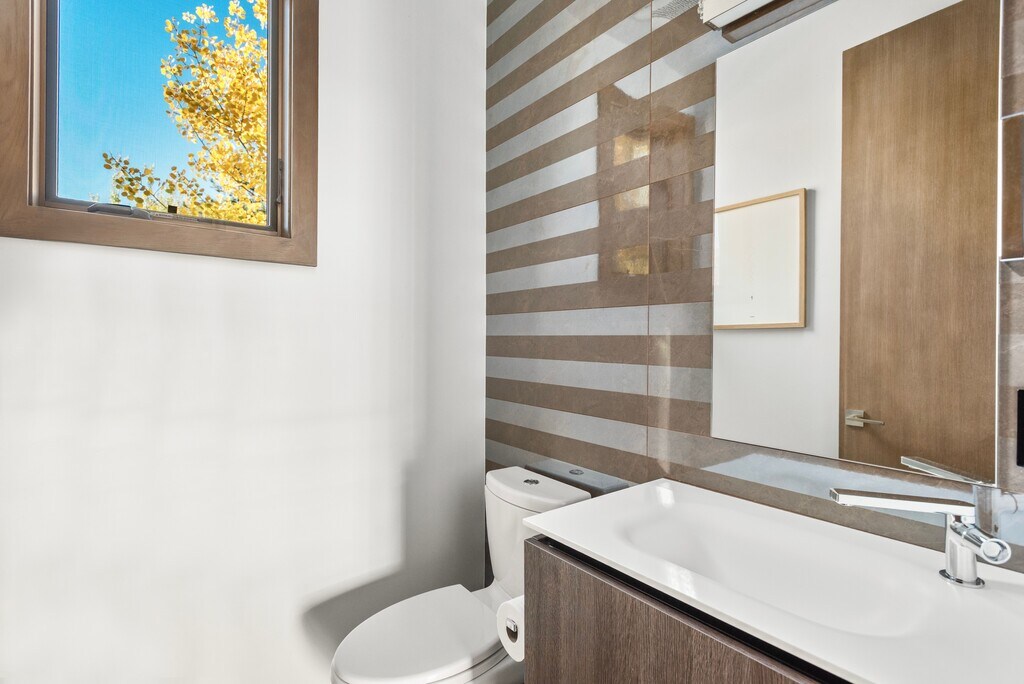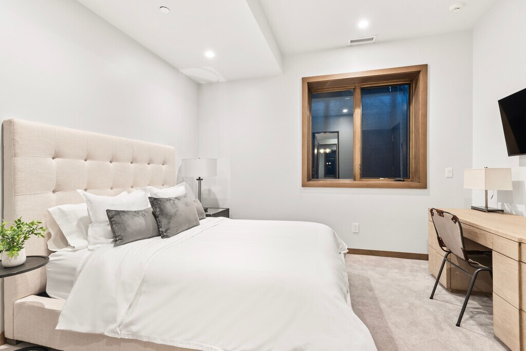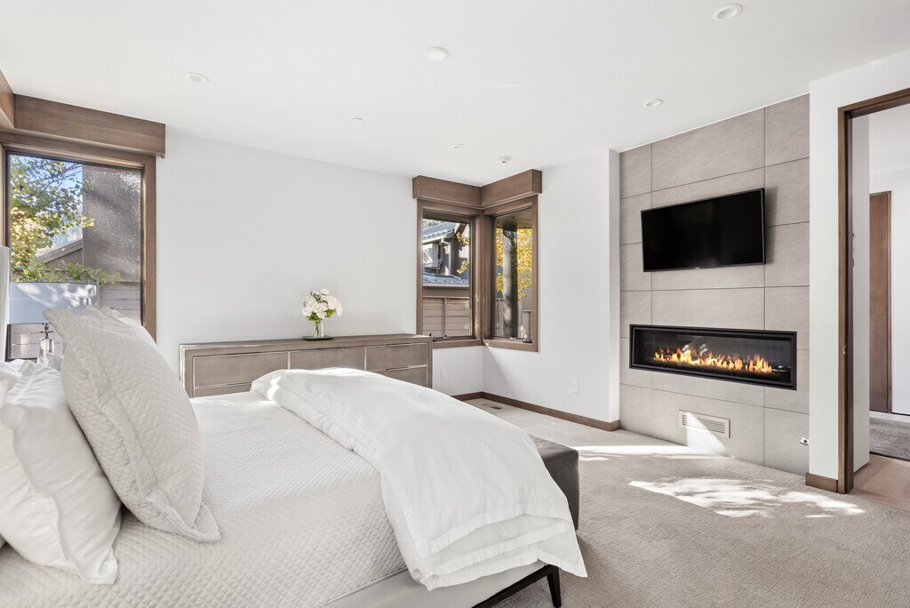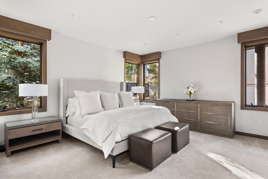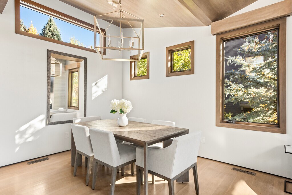 This luxury mountain modern home is in the perfect quiet location and walking distance to town. Great natural light and views from the living room, kitchen, dining room and outdoor deck. Three-bedroom suites, plus a family room/office and furnished balcony provides plenty of room for the entire family. Furnishings, art and appliances are all high-end. Added bonus: a dumb waiter is available to seamlessly transfer items between all three levels. The home is located near the base of Smuggler Mountain with lots of sunshine and trail systems in all directions.