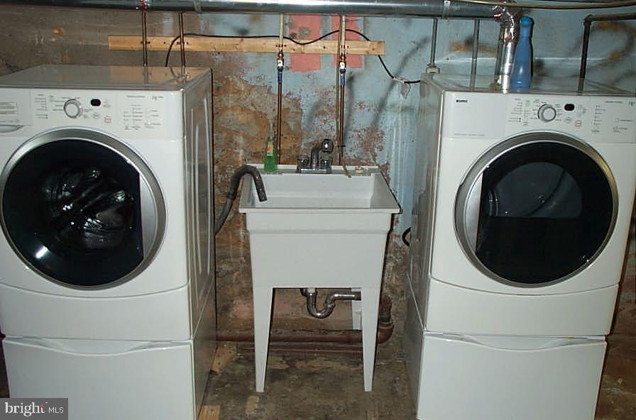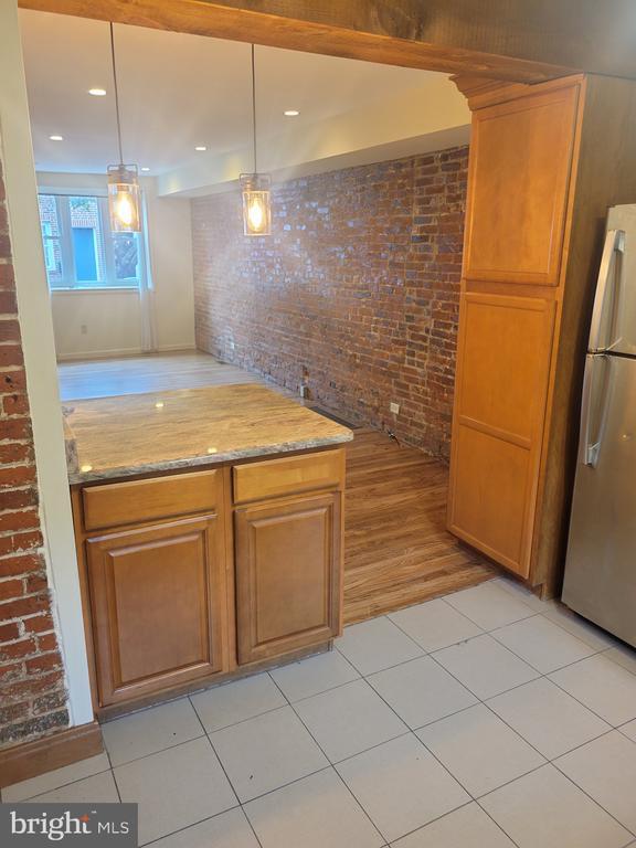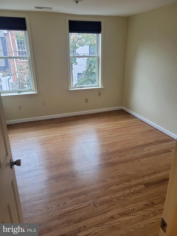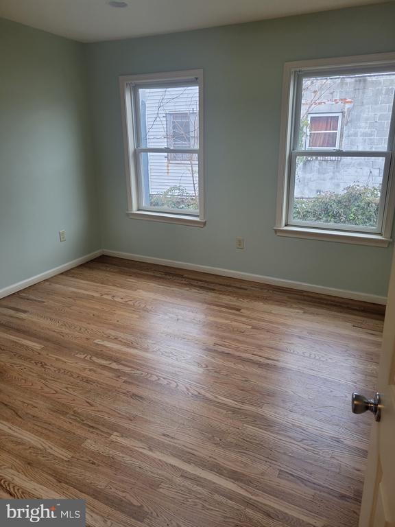 Open House: Thur, 10/16 from 5pm - 6pm. A jewel box of a house. First floor open-plan with exposed brick, convenient powder room, and cook's kitchen with granite, stainless, breakfast bar, and extra tall cabinets. Wood floors throughout. Two spacious, similar sized bedrooms upstairs, generous closets, modern full bath, skylights, central AC, ceiling fans. Full basement with extra large washer and dryer and pull-down loft attic for storage. Nice size concrete back yard. Tenant pays utilities.