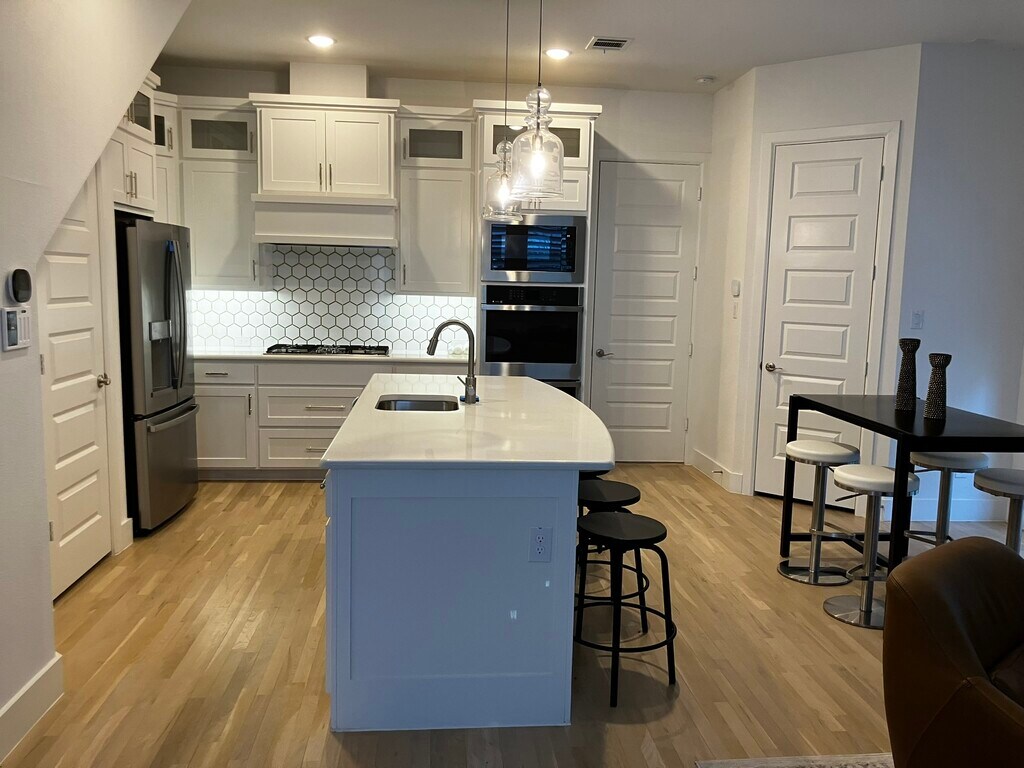 Beautiful 3 bedrooms, 4 bathrooms (2 full, 2 half) 1,899 sq ft furnished home. Located in the Sapphire Bay Development on Lake Ray Hubbard. Be the first to live in this luxurious 3 story home with beautiful lake views. Brilliant floor plan with living room, kitchen, half bath, garage and dining room on the first level. 3 bedrooms, 2 bathrooms and laundry room on the second level. Flex space, wet bar, half bath and balcony, with lake views, on the third level. Home features a chef-inspired kitchen with stainless steel appliances, ample cabinet space, quartz countertops, and a built in bar. This space is perfect for cooking and entertaining. The luxurious master suite offers a serene retreat with a spa-like en-suite bathroom, complete with a soaking tub, separate shower, and dual vanities. Hardwood floors and wood shutters compliment this beautifully decorated home. Outside enjoy a small side yard and patio with access from the living area that is ideal for outdoor dining and relaxation. With its prime location on Lake Ray Hubbard and easy accessibility to major highways, this home offers both luxury and convenience. Home equipped with security cameras, alarm system and ring doorbell. Rent $3,300 after $150 discount for rents paid electronically prior to the 1st day of the month. Rate without discount $3,450 Notes: No Pets Alarm system and Internet can be provided as a pass-through charge with additional deposit or long term contract.