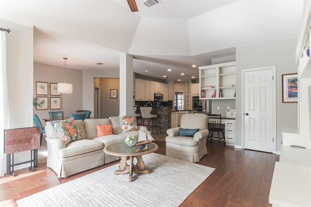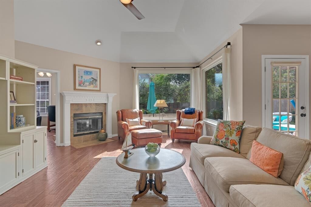 Fantastic single story home in River Place with open floor plan and solid surface flooring throughout. It features 4 bedrooms, formal dining, and living and family room. Kitchen has double oven, gas cooking, and granite countertops. Private backyard has a swimming pool and spa. MLS ID 5125867