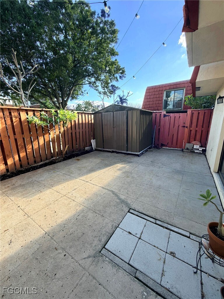 Well-maintained 2-bedroom,2-bath two-story townhome offering 1,236 square feet of comfortable living space in a desirable centrally located community for those who need to be close to everything. WATER included. This home features a private,fenced courtyard that creates a cozy,European-inspired atmosphere—ideal for outdoor dining,relaxing,or entertaining in a more secluded setting. Storage shed left as a courtesy for additional storage. The interior offers a practical and inviting layout with two spacious bedrooms,two full bathrooms,and an open living area that flows naturally into the courtyard. The kitchen offers stainless steel appliances,while luxury vinyl plank flooring enhances durability and ease of maintenance throughout the living areas. Designed for both comfort and functionality,this townhome is well-suited for everyday living. The home has two parking spots. Residents enjoy access to a heated community pool. Conveniently located just 4 minutes from Publix,Dunkin’ Donuts,and Broadway Palm Dinner Theatre,5 minutes to Trader Joe’s and Sam’s Club,9 minutes to Edison Mall,and 23 minutes to Fort Myers Beach.