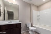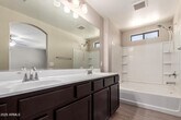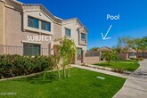 This model perfect Townhome checks all of the boxes! Attached 2 car garage,private gated court yard,and poolside unit! Great Room and '/2 bath downstairs and all bedrooms upstairs,Master is split from the other two bedrooms with a convenient loft/study area in between! Laundry is upstairs as well! All appliances are included. Sanctuary on the Green is conveniently located across from the City of Mesa's 6 Acre Enid Park. New build = High efficiency standards. Low E windows. Programmable Thermostat,2x6 exterior walls,and 14 SEER AC.