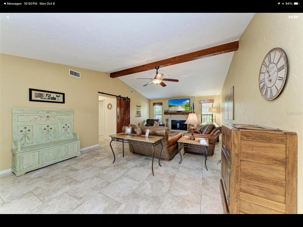 5225 fielding lane Sarasota Florida 34233 Imagine yourself living on a rare, picturesque waterfront homesite wrapped in water on two sides, on over half an acre (30,060 SF) adorned by majestic oak trees, graceful areca palms, and lush tropical landscaping, all in a prime Sarasota location just minutes from everything. Extensively and beautifully updated, this 3-bedroom home offers flexible living spaces, including a spacious living room with three large windows flowing to a formal dining area with lovely grounds views and pocket sliders to the lanai. The updated chef’s kitchen is a true delight with soft-close custom cabinetry, gorgeous granite countertops, newer stainless-steel appliances including a beverage refrigerator, under-cabinet lighting, an open connection to the living room featuring a breakfast bar, and a charming pass-through window to the lanai—perfect for indoor-outdoor entertaining. The expansive family room radiates warmth and charm with a wood beam on the vaulted ceiling, anchored by a striking wood-burning fireplace framed by two bright windows, plenty of room to add breakfast table and pocket sliders that open to an L-shaped lanai showcasing serene water views from multiple angles. From the lanai you can access the guest bathroom and is decorated with striking brick pavers. Nearly every room enjoys glimpses of the sparkling waterfront backdrop and lush greenery. The split primary suite offers two closets and an updated bath, while two guest bedrooms, a remodeled bath, and a custom laundry room with plenty of storage are privately tucked behind a barn door for maximum comfort and privacy. One of the guest bedrooms is being used as an office and desk portion can be easily removed. Other conveniences include tile throughout, all hanging TV’s are included, county water and sewer, and propane gas is connected to stove and hookup for an outdoor grill. Outdoor living shines with a firepit, adorable concrete table and benches for morning coffee or sunset gatherings, and an impressive storage shed with a newer roof—perfect for storing tools, toys, or transforming into your dream workshop or hobby space. Plus, there’s ample room to add your dream pool, park your boat or RV, and host unforgettable events. With no HOA or CDD fees, no flood zone, and unmatched privacy, this is a rare opportunity to own a stunning, move-in-ready waterfront home on an estate-sized parcel in one of Sarasota’s most sought-after locations with the convenience of being only 5.5 miles from award-winning Siesta Key Beach, minutes to I-75, vibrant downtown Sarasota, top shopping, dining, premier schools, Legacy Trail and so much more!