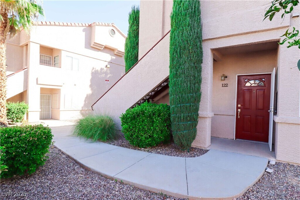 Available January 1st - Modern and inviting 2-bedroom condo featuring a spacious, well-designed layout with a cozy living room and a kitchen equipped with new stainless steel appliances. The primary bedroom includes a private en-suite bathroom, while the second bedroom is ideal for guests, an office, or a hobby space. Located on the first floor with a dedicated parking spot, community pool access, and a peaceful atmosphere just minutes from The Strip, shopping, dining, and entertainment.