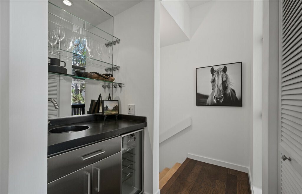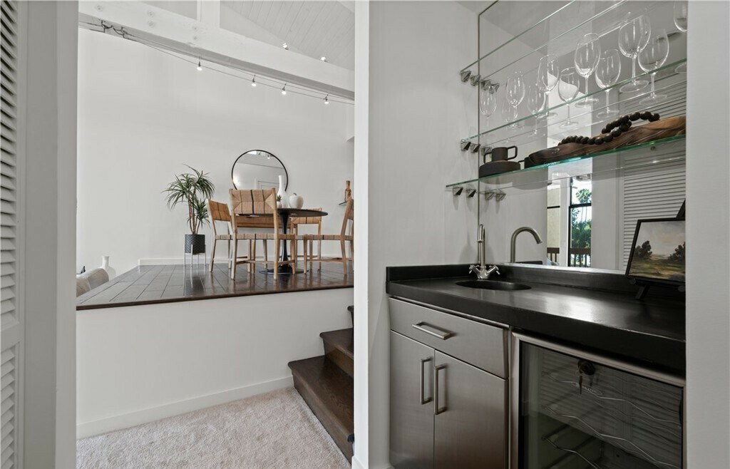 Welcome to a stunning corner Townhome with two wrap around balconies that provide beautiful views of the lush lagoon and Alamitos Bay. This private oasis offers floor to ceiling windows, tall beamed ceilings, and no neighbour's above. This beautiful home showcases a stylish stainless steel kitchen with Viking appliances that overlooks the Bay. The dining platform and step down living room open up to a spacious balcony perfect for enjoying sunsets, BBQs, and watching boats pass by. Upstairs, you'll also find a powder room, built-in bar, laundry facilities, and storage space. The lower level has two en-suite bedrooms, a den, and plenty of custom closets. The spacious primary en-suite provides a stunning view of the Lagoon, making it an ideal retreat. Enjoy your morning coffee on the balcony as you watch the Heron's gracefully flying by. The den's layout offers flexible options, serving as an office, workout space, or for other needs. Located in the waterfront community of Marina Pacifica, this property is within a 24-hour, guard-gated community, offering various amenities such as direct marina access for paddle boarding, boating, and shopping. Residents can enjoy the 18 acres of beautifully landscaped grounds, including six pools and spas, three lagoons with wildlife, a gym, and a clubhouse. It truly exemplifies the best of waterfront living. It's a pet friendly home but must be well trained ones that don't destroy.