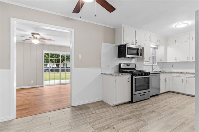 Susie FitzgeraldBeautifully updated 3-1-1 in Haltom City within Birdville ISD. Step inside to a spacious living room that opens to the kitchen and dining areas, creating a comfortable flow. The kitchen showcases granite countertops, subway tile backsplash, stainless steel appliances including a gas range, built-in microwave, and ample storage. The oversized family room offers room for relaxing or entertaining with views of the large, fenced backyard. This home offers three nicely sized bedrooms and a charming full bath with upgraded fixtures. Hardwood floors are found in most of the home. The backyard is a true highlight with both a covered deck and an open patio for outdoor gatherings, plus a dog run. A bonus backyard office with AC-heat makes the perfect work-from-home space, and a storage shed keeps tools and toys tucked away. An extra-deep single-car garage plus attached carport provide plenty of parking options. You can walk to Stowe Elementary! 2 pets under 35 lbs. or one pet over that weight. Pet verification required - no aggressive breeds allowed.