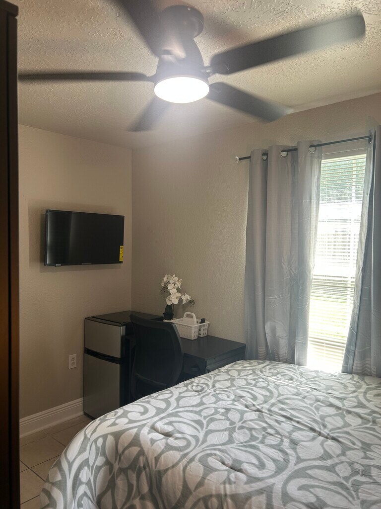 Private room available (1 out of 8 bedrooms available) in a home with shared bathrooms and common spaces. Please note that the room that is currently available has private access to the exterior of the home. Discover the perfect blend of comfort, convenience, and modern living in this newly renovated co-living home. Located in a prime area, this home offers easy access to all major destinations like Northline Park, I-45, Hardy Toll Rd, I-610, Bush Airport, The Heights, Memorial Hermann, Walmart Supercenter, Downtown and public transportation. Relax in the generous living spaces designed for comfort and convenience. Each room comes equipped with luxury mattresses, smart TVs with unlimited internet access, mini refrigerators, workspaces, blackout curtains and ample storage. Experience a stress-free lifestyle with all utilities, pest control, maintenance and professional house cleaning included. Whether you're looking to cut your work commute or simply need a place to call home, don't miss out on the opportunity to make this beautiful, home your own. Contact us today to experience the comfort and convenience of stress-free affordable living! Listing is for a private room in a shared home with a shared bathroom. Please note: 1 out of 8 rooms is currently available. This room has private access to the exterior of the home. Minimum 12 week commitment or applicant can pay a fee to be able to move out anytime.