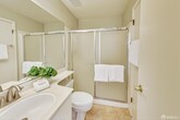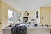 Welcome to this stunning approx. 1400 sqft condo with breathtaking panoramic views of lush green mountains. Featuring 2 bedrooms and 2 baths, this home offers both elegance and functionality. The expansive living room boasts soaring ceilings, an open floor plan, and a cozy wood-burning fireplace, leading to a private balcony perfect for enjoying the views. The primary ensuite provides a double vanity, and a luxurious soaking tub with hill views. Located in a gated community, you'll enjoy amenities like a gym, clubhouse and lush walking paths. Conveniently accessible to both Highway 101 and Interstate 280, and close to restaurants, grocery stores, coffee shops, and shopping centers. This condo combines tranquil living with urban convenience, ideal for those seeking a blend of relaxation and accessibility.