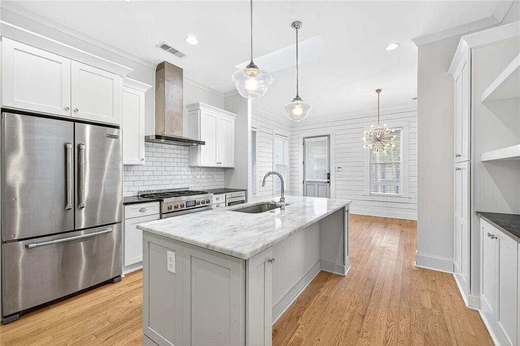 Step into this stunning newer home in the heart of Old Fourth Ward,where modern design meets everyday comfort. Soaring 10’ ceilings and wide-plank oak floors set the tone,while perfectly placed skylights fill the open floor plan with natural light.The chef’s kitchen is a true showpiece,marble countertops,stainless steel appliances,offering seamless views into the dining area,living room,and out to the private patio. The fully fenced TURF backyard is ideal for grilling,entertaining,or unwinding outdoors. Retreat to the spacious primary suite,featuring a spa-inspired bath wrapped in polished glass tile,marble flooring,and a walk-in shower that feels like your own personal retreat. Two additional large,light-filled bedrooms provide incredible flexibility. perfect for families,roommates,or a dedicated work-from-home setup. Enjoy unbeatable access. bike or stroll to Krog Street Market,the BeltLine,and some of Atlanta’s best dining,shopping,and nightlife all just minutes from your front door.