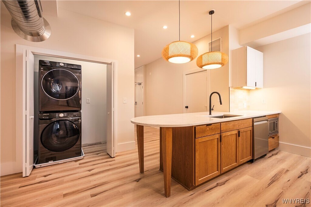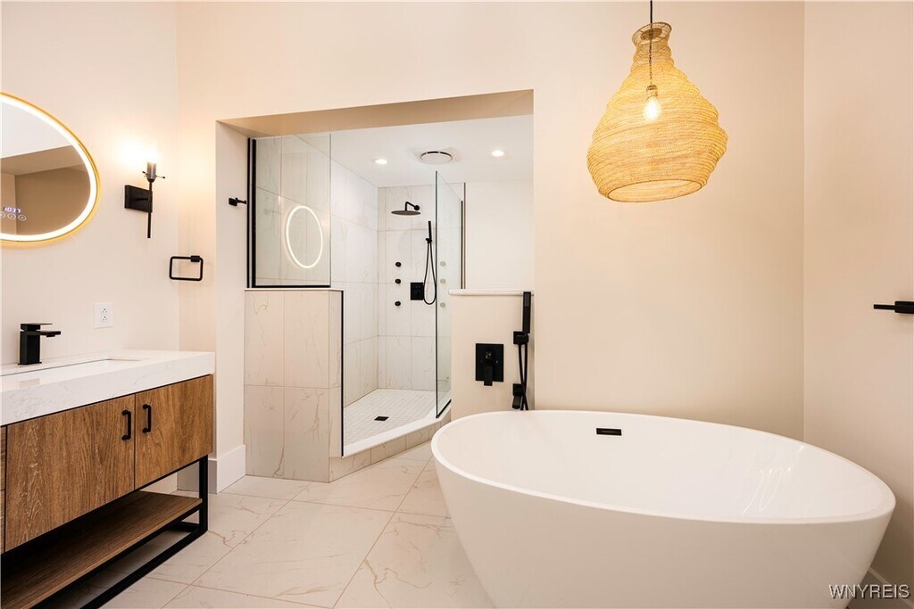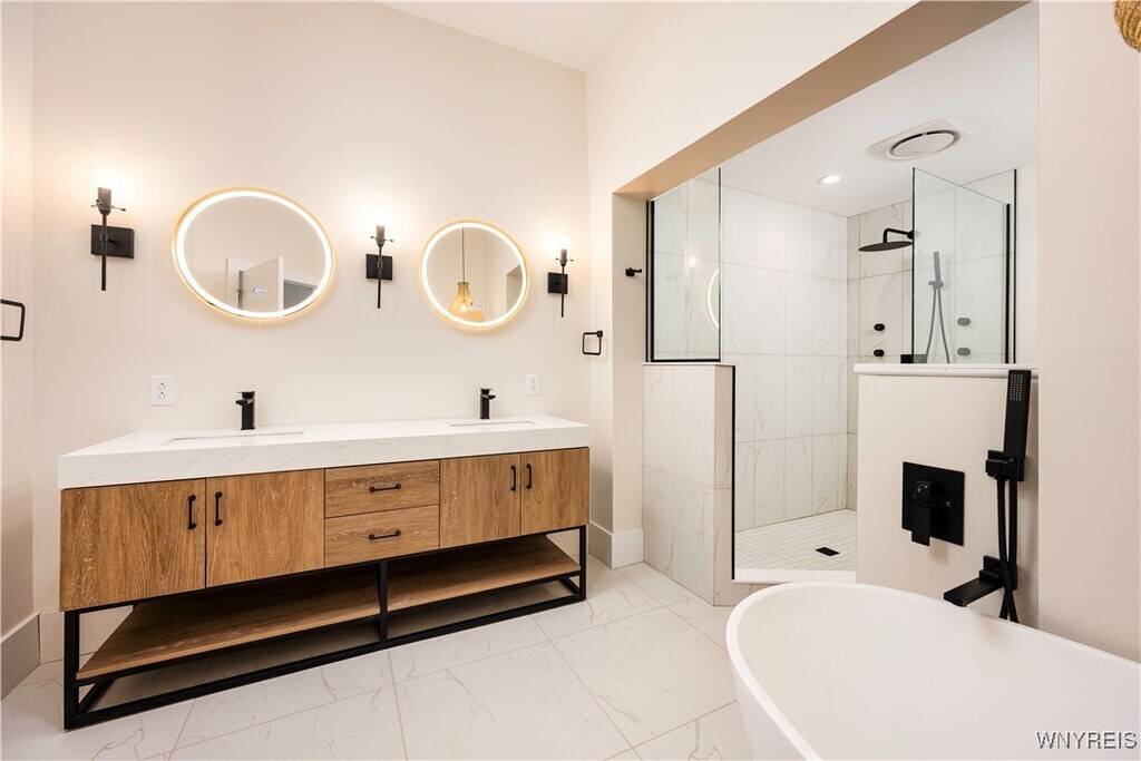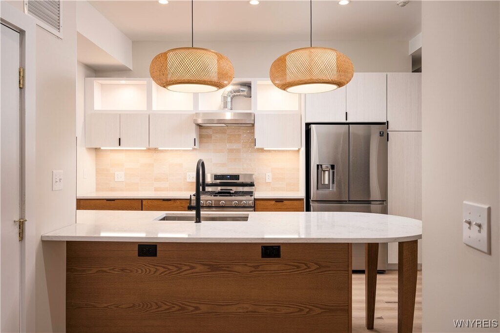 Live at the center of it all in this stunning,newly built residence in the heart of downtown Buffalo. Spanning 1,600 square feet,this two-bedroom,two-bathroom apartment blends modern luxury with urban energy. The highlight is the primary suite,featuring a spa-inspired bathroom with a striking soaking tub,double vanities,and a walk-in spa shower. Two primary closets make for tons of storage space. Step outside to your private rooftop patio,the ultimate retreat for morning coffee or evening cocktails with skyline views. Expansive floor-to-ceiling windows flood the living space with natural light and frame the vibrancy of Main Street below. Entertain with ease in the designer kitchen,where a massive island,premium fixtures,and high-end finishes set the stage for memorable gatherings. Additional features include: In-unit laundry,Parking available for an additional fee,Pet-friendly (with deposit),Wi-Fi Included in rent