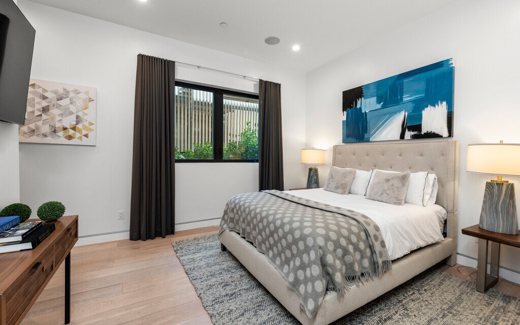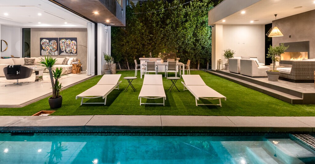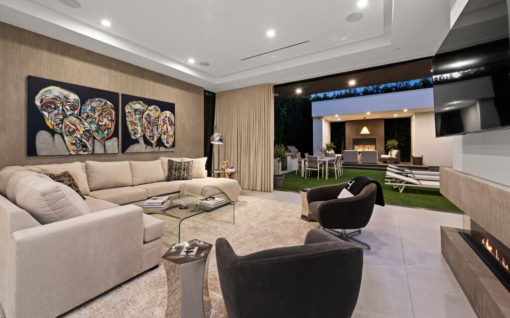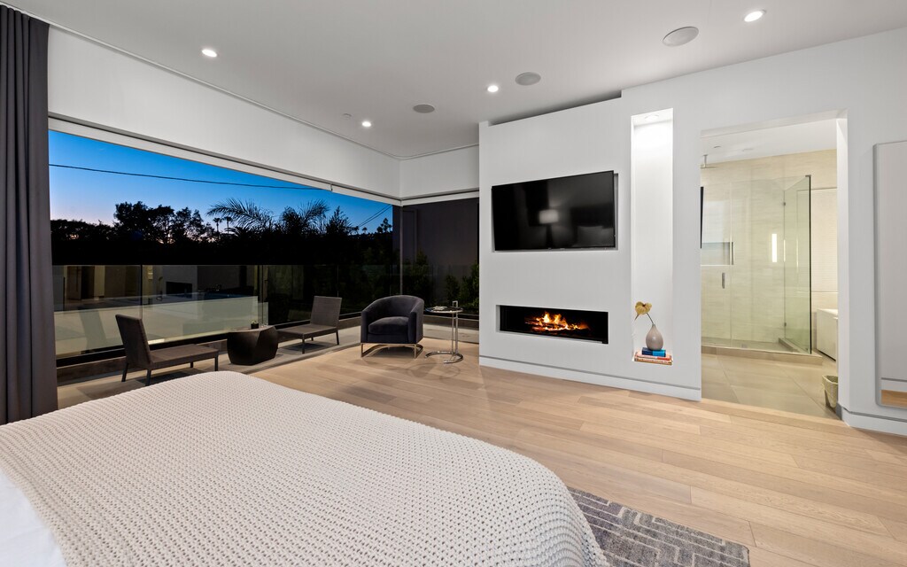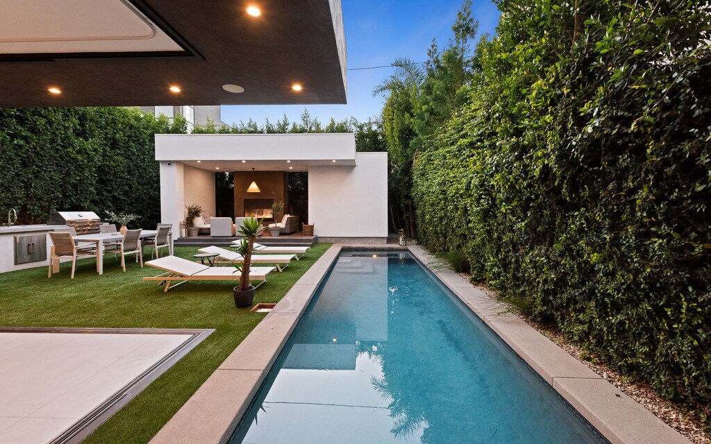 Available full-furnished and turnkey for short or long-term rentals! Pamper yourself in the exquisite luxury of this modern home. Step behind the gate into the walled privacy of nearly 5,600 square feet of indoor-outdoor living spaces. Grand open plan living areas with grand central staircase, high ceilings, walls of glass, and expansive pocketed Fleetwood door systems connect you with two open air garden courtyards and the secluded back yard with pool, spa, 230 square foot cabana with fireplace, and BBQ are ready to serve you whether you're relaxing or entertaining. The 1,100 square foot rooftop deck with outdoor bar and fire pit is ideally suited to lounging or celebrating under the sun or stars. Retire to the sumptuous master suite with large private balcony, and spa-style bath while 4 guest rooms await your family and friends. Custom designed, fully furnished, and tastefully decorated, this wonderful home includes: gourmet kitchen with Miele appliances, oversized center island and large pantry- 4 fireplaces (2 Ortal)- Sonobath powder room- imported designer bath tiles & fixtures- hardwood floors- outdoor fitness areas with yoga mat for free weight and resistance band training, and state-of-the-art Crestron home automation system for your comfort. Call for short term pricing.