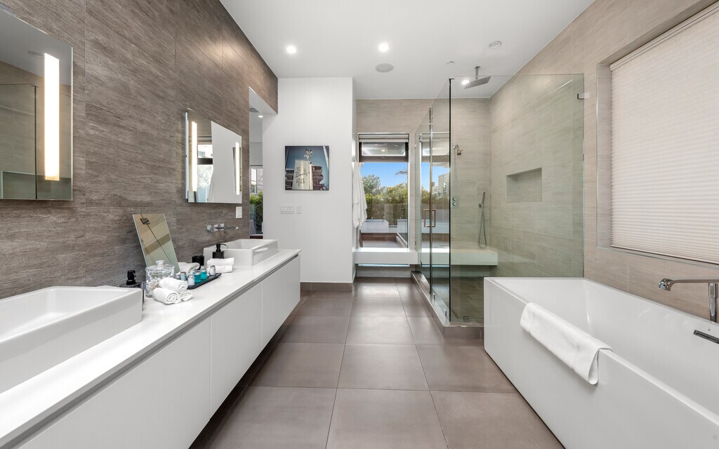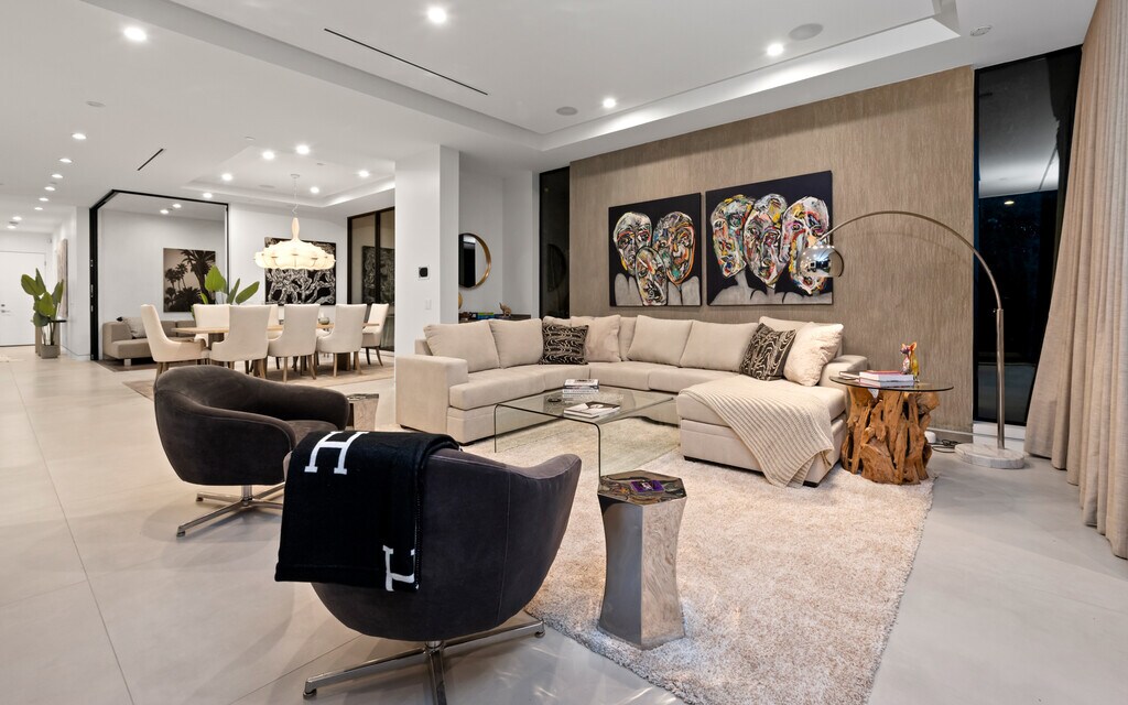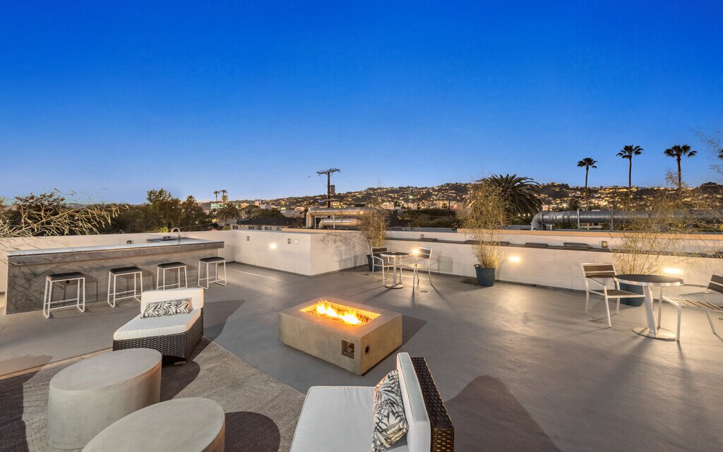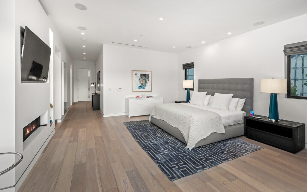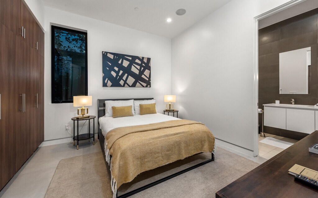 Available full-furnished and turnkey for short or long-term rentals! Pamper yourself in the exquisite luxury of this modern home. Step behind the gate into the walled privacy of nearly 5,600 square feet of indoor-outdoor living spaces. Grand open plan living areas with grand central staircase, high ceilings, walls of glass, and expansive pocketed Fleetwood door systems connect you with two open air garden courtyards and the secluded back yard with pool, spa, 230 square foot cabana with fireplace, and BBQ are ready to serve you whether you're relaxing or entertaining. The 1,100 square foot rooftop deck with outdoor bar and fire pit is ideally suited to lounging or celebrating under the sun or stars. Retire to the sumptuous master suite with large private balcony, and spa-style bath while 4 guest rooms await your family and friends. Custom designed, fully furnished, and tastefully decorated, this wonderful home includes: gourmet kitchen with Miele appliances, oversized center island and large pantry- 4 fireplaces (2 Ortal)- Sonobath powder room- imported designer bath tiles & fixtures- hardwood floors- outdoor fitness areas with yoga mat for free weight and resistance band training, and state-of-the-art Crestron home automation system for your comfort. Call for short term pricing.