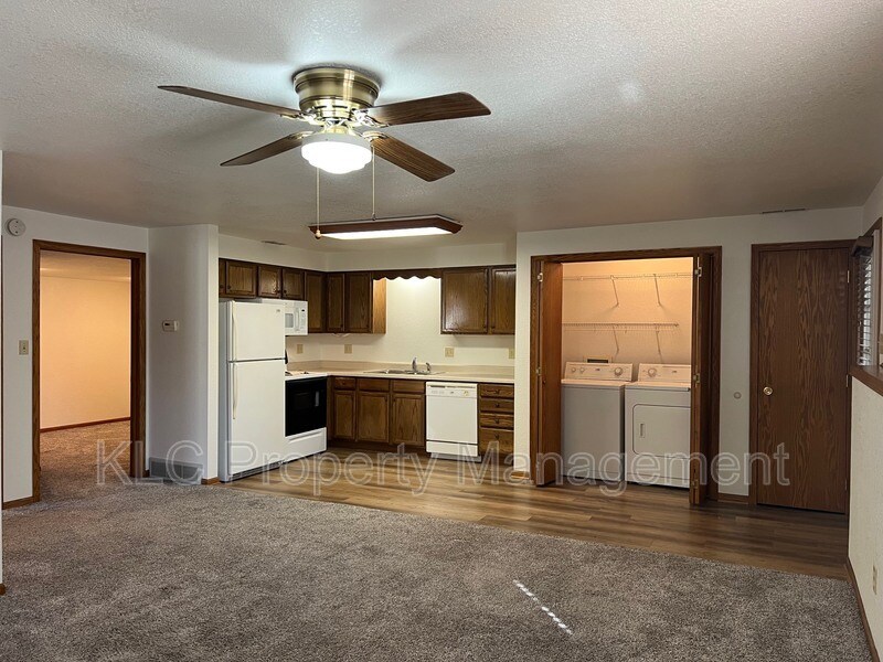 This ground floor apartment is located in the quiet suburb of Adel!! It features an open floor plan concept. Large living room with built in book case, carpets are newer. Sizeable kitchen and all appliances plus the washer and dryer are provided. One bedroom with egress window plus a bonus room with many potential uses; office, hobby room, TV room. Full bathroom. The entire unit was just painted, professionally cleaned and carpets cleaned, it's ready for you to move in with approved screening!! Lawn care and snow removal are included with the rent. One car attached garage with an opener. Lots of great amenities in Adel, close to grocery store, schools, shopping, beautiful town square and minutes to the Interstate. No Pets! No Smoking! No Exceptions! Listed for rent by KLC Property Management. Please ensure all communications regarding this property are conducted exclusively with KLC and Tenant Turner. All prospective residents aged 18 and over are required to undergo credit and background screenings. A one-time administration fee of $300 applies. Application fees are $60 per person. We offer deposit free living through OBLIGO. For more details, please visit the website at or contact Phyllis at .