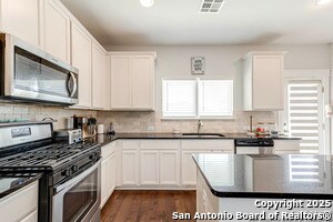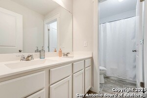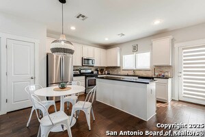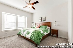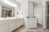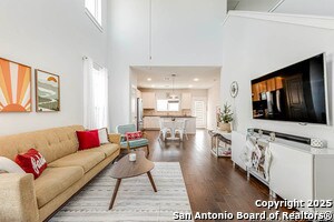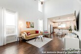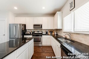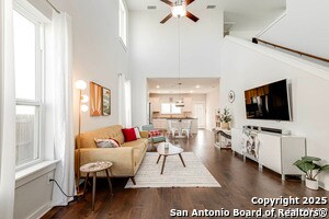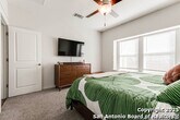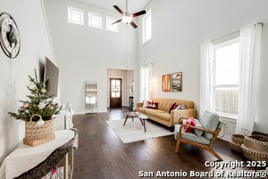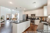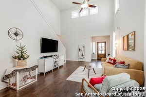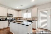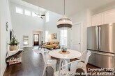 Welcome home to this cute-as-a-button gem that perfectly blends style, space, and location! This 3-bedroom, 2.5-bath home features an open floorplan with soaring 18-foot ceilings in the living room, creating a bright and airy feel the moment you walk in. Durable yet stylish wood-look tile flooring flows through the main living areas, making everyday living both beautiful and low-maintenance. The downstairs primary suite offers privacy and comfort and includes a sitting window, creating a cozy space to relax or unwind, while two additional bedrooms upstairs are complemented by a versatile loft-ideal for a game room, home office, arts & crafts room, or play area. The kitchen is designed for gathering, complete with a center island and easy connection to the living and dining spaces. Step outside to a covered back patio and a perfectly sized backyard made for entertaining, featuring string lights that add the perfect touch of evening ambiance. Located in a quiet neighborhood with a city park right within the community, this home also offers unbeatable convenience with easy access to I-35, just 15 minutes from Schlitterbahn, 23 minutes to Randolph AFB, and close to restaurants, shopping, and entertainment. This home checks all the boxes-comfort, charm, and a fantastic location.