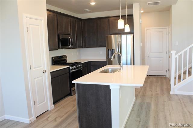 Fabulous almost new 3 bedroom, 2.5 bathroom patio townhome in AMAZING Wolf Ranch Community! Spacious main floor open design offering vinyl plank flooring throughout the main level. Kitchen features a center island, eating bar, stainless steel appliances with gas range, quartz counter tops with 42 upper cabinets and crown molding. Primary bedroom suite offers a 4 piece bathroom with dual sinks, quartz counter, stand-alone shower with bench seat and large walk-in closet. Also includes central air conditioning, 2 ceiling fans, 2 car garage and fenced front yard area. Extra storage in crawl space with concrete floor installed! Landscaped and fenced front and side yard area for your garden plants. Some mountain views from the front. Enjoy Wolf Ranch Lake with fishing, kayaking, paddle boarding, open space, trails and tenant can purchase membership to the seasonal pool. Convenient access to Schools, Hospital, Restaurants and business along the Powers corridor." Townhouse MLS# 3850992