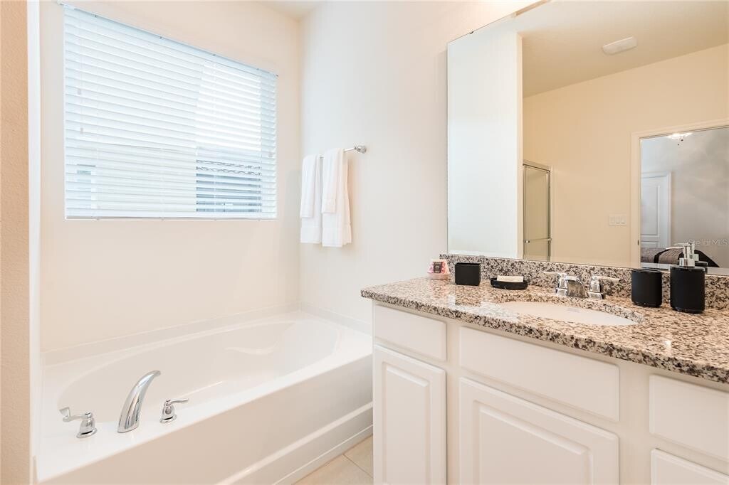 ***It's all about Location for this home which sits at a ***PRIME LOCATION*** and is situated directly behind the Clubhouse. Access to the fantastic community amenities is just a short walk across the backyard. Home also comes with a Heated SALTWATER pool with all appliances are included. *** NO CARPETS *** all bedrooms and loft area have vinyl plank flooring. There are 3 ensuite bedrooms and the owner's suite downstairs have a private walkout into the large lanai and pool. Solterra Resort is a highly sought-after gated community nestled in the heart of Davenport,Florida,just a short drive from Orlando's most popular attractions. This premier community offers a perfect balance of luxury,relaxation,and recreational activities for residents. The centerpiece of Solterra Resort is its expansive clubhouse,which serves as a hub of entertainment and socializing. The clubhouse offers a range of amenities,including a state-of-the-art fitness center equipped with modern exercise equipment to cater to residents' health and wellness needs. The resort-style swimming pool at Solterra is a true oasis,complete with a beach entry,water slide,and a separate splash zone for the little ones. For those who enjoy staying active,Solterra Resort offers various recreational options. Play a round of tennis or basketball on the sports courts,challenge friends and family to a game of volleyball on the sandy court or burn off energy at the playground. If Room sizes,etc. are of importance please measure. MLS# S5143076