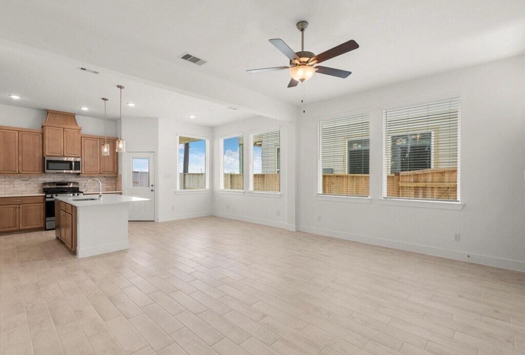 Stylish Townhome in Highly Desirable Meridiana! Beautifully maintained home featuring 3 bedrooms,2.5 baths,and a versatile upstairs flex room. The open-concept first floor offers tile flooring,quartz countertops,stainless steel appliances,and warm Barley-colored cabinetry. Upstairs flex space is perfect for an office,playroom,or second living area. The spacious primary suite includes dual vanities and a large walk-in shower. Enjoy added storage,convenient utility space,and front yard maintenance included. Located in award-winning Meridiana with resort-style amenities including pools,lazy river,fitness center,parks,and walking trails. Available May 1st — schedule your showing today! MLS# 31360463