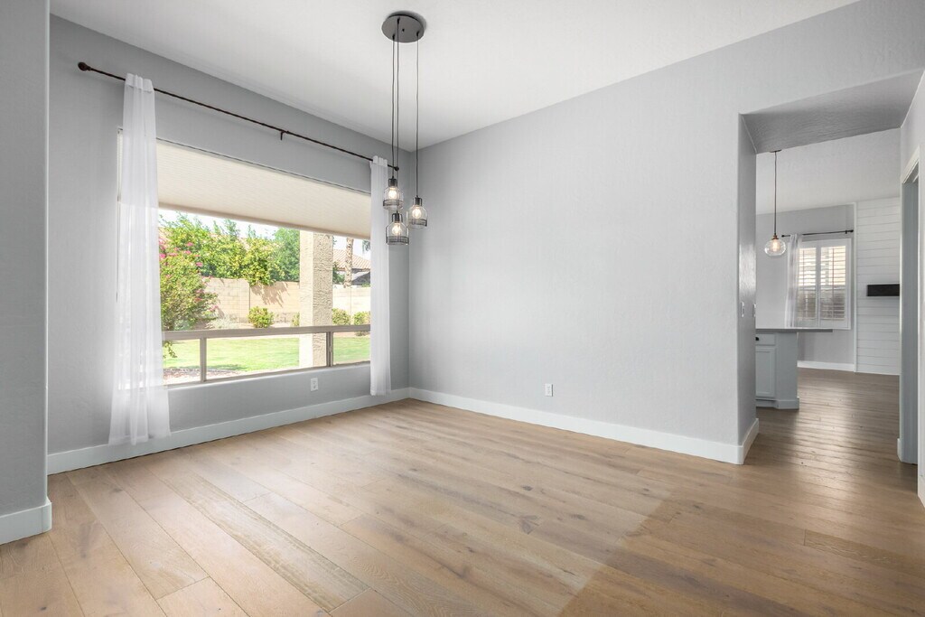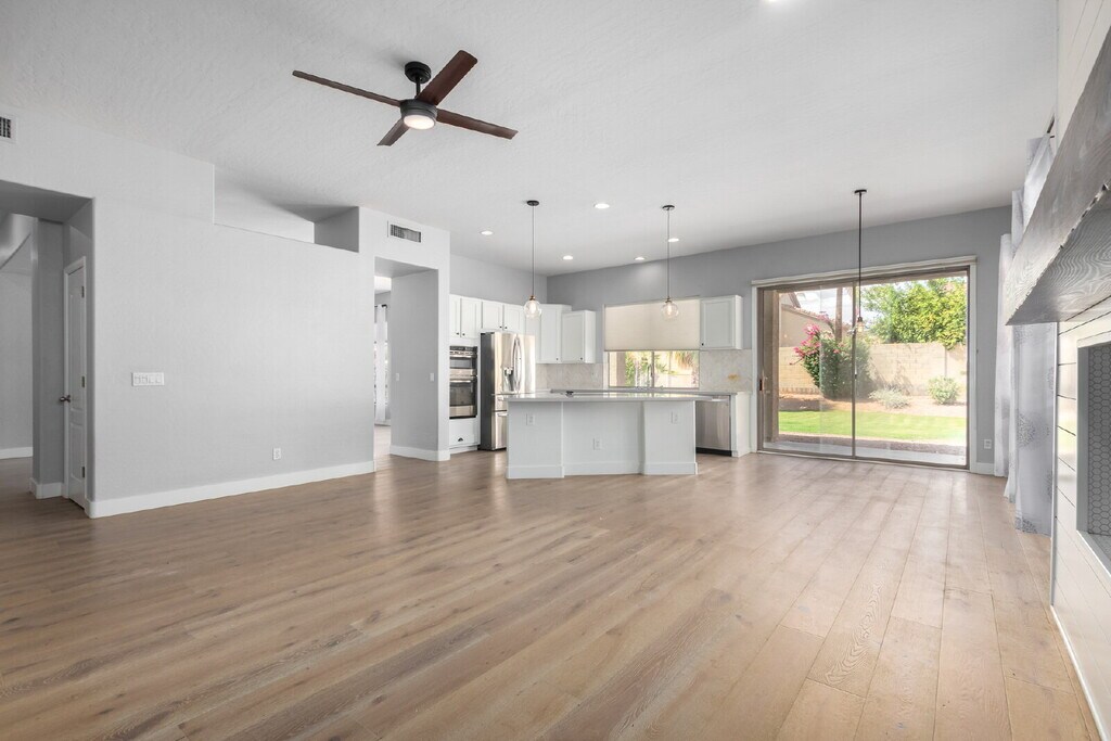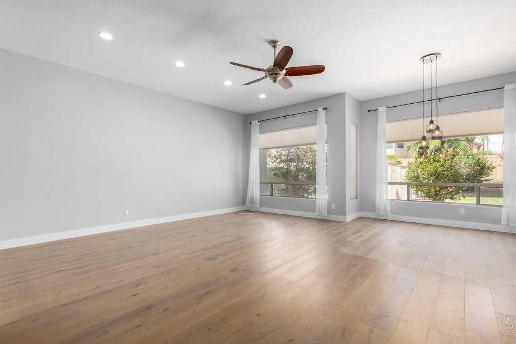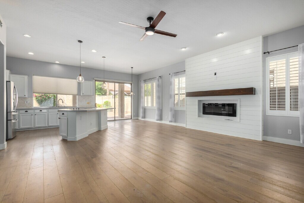 Gorgeous updated 4 bed 2 bath home with pool and 3 car garage in highly desirable Arabian Views neighborhood. For showings, rental qualifications and applications visit Cadaci online. Home features a large formal living room and dining room with bar and wine fridge, could also be used as a game room. The family room has a fireplace and is open to kitchen and kitchen dining areas. You will love the granite slab counter tops, stainless appliances, and upgraded white cabinets. Split floor plan. Super sized primary bathroom with huge walk-in closet. Wood plank flooring in the common areas. Ceiling fans and plantation shutters throughout. Two tone designer interior paint, new carpet. Refrigerator, washer and Dryer included. Large covered patio with huge grassy backyard with fenced pool to one side allowing lots of play area. Pool service included in rent. Refundable deposits: $4500 Security, $300 cleaning, $300 Pet. Non-Refundable Fees: $250 Admin, $50 per person application fee.