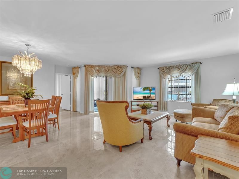Immaculate 3 Bedroom/2 Bathroom FULLY FURNISHED Carrera Village condo in the beautiful Platina Community. Very spaciously designed, with 24x24 porcelain tile flooring throughout the main area of the Home. Eat-in Kitchen has wood cabinets & stainless steel appliances. Split floor plan, and Guest Bedrooms have use of a full Guest Bathroom with combo shower & tub. Full Dining and Living Room area with plenty of natural sunlight, as well as an enclosed Patio with washer & dryer. Large Main Bedroom has an en suite Bathroom with separate tub & shower. Screened Front Patio includes a storage closet. 24hr guard gate, with endless clubs & activities (See Attachments).