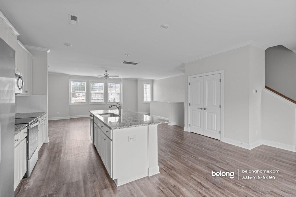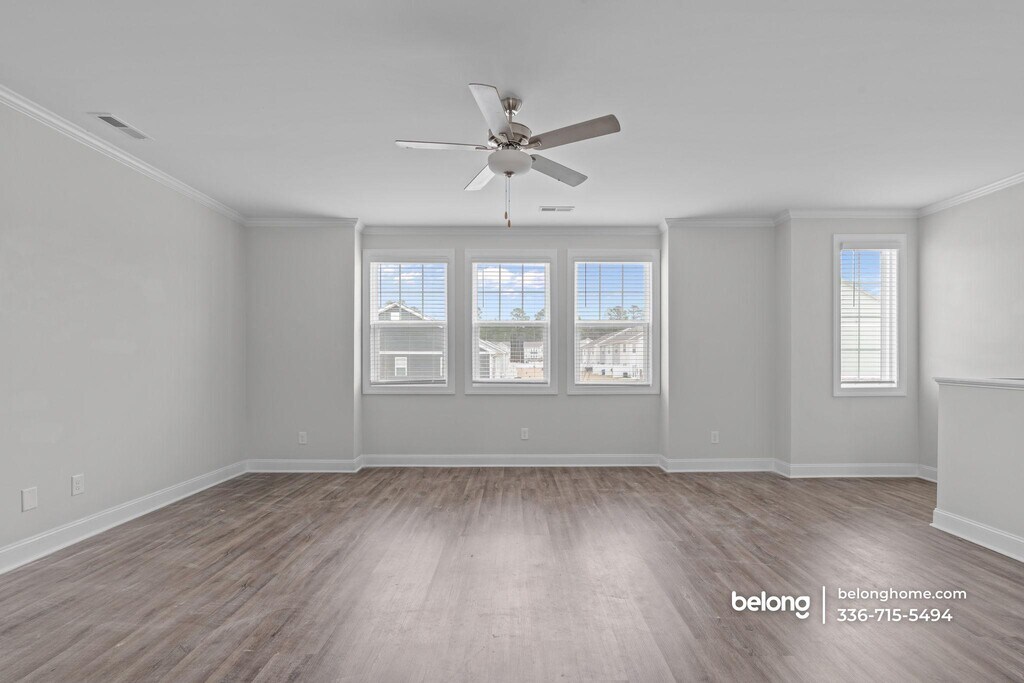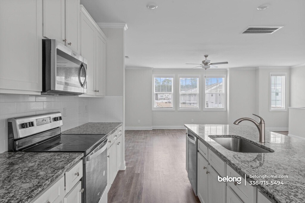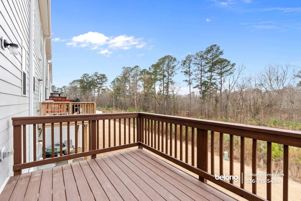 Offering nearly 2,050 square feet across three well-planned levels, this spacious townhome provides flexibility for daily living with room to spread out. The main level centers around a generous living room and a designer kitchen equipped with stainless steel appliances, including a dishwasher, refrigerator, microwave, and electric range oven, all finished with granite countertops. On the first level, a bonus room adds valuable extra space that works well for a home office, workout area, or creative setup. An in-unit washer and dryer support everyday routines, and a two-car garage keeps parking straightforward. The primary bedroom includes a walk-in closet and an attached bathroom designed for privacy and comfort. Two additional bedrooms on the top floor share a full bathroom, creating a practical layout that supports a variety of living needs. Outdoor living is extended with both a balcony and a patio, each overlooking a lush, green forest view that brings a calm backdrop to your day. Community features include a children’s playground, picnic area with BBQ grills, and open green spaces. Buffaloe Road Athletic Park, the Buffaloe Road Canoe Launch, and the Neuse River Greenway Trail are all nearby, offering convenient access to outdoor recreation. Grocery stores, restaurants, and shopping options are close at hand, and easy access to 401 and I-540 helps keep commuting around Raleigh efficient. *Our homes come as-is with all essentials in working order. Want upgrades? Request it through the Belong app, and our trusted pros will take care of the rest!