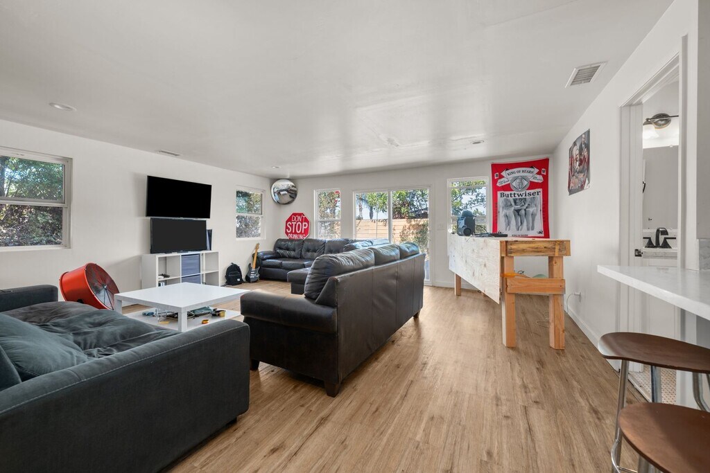 Property Features: - Beautiful and spacious remodeled home steps to SDSU - FIVE full bathrooms - TWO full size open concept kitchens - TWO in-unit washers and dryers - TWO dishwashers - Large private backyard with turf and patio - Spacious living room + dining room - 2 car driveway - No back house! - 2 house numbers for 8 street parking permits! - Can accommodate 9 tenants