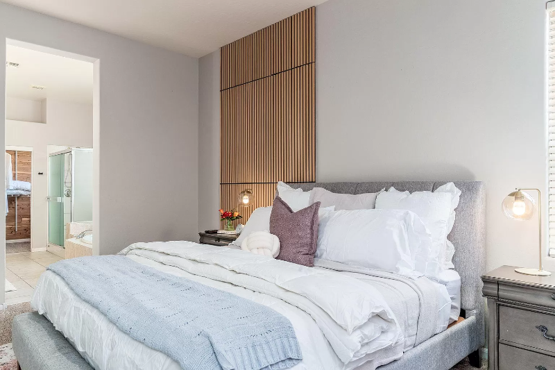 Property Id: 1557686 Fully Furnished, Move in Ready! Upon entering the home, you will be greeted with our luxurious & spacious game room. Our game room comes furnished with a large cozy sectional, pool table, foosball table, and a HD Smart TV. The kitchen is set up with all your cooking essentials such as: pots, pans, silverware, Keurig coffee maker for you to feel right at home. The dining area comfortably seats 6 people. We also have a high top bar seating for an additional 2 seats. he master bedroom features a beautifully decorated King-Size bed and a private en-suite bathroom. The bathroom has a deep soaking jacuzzi & a separate walk in shower. The master bedroom has a large walk in closet with plenty of space to organize your belongings. For your enjoyment and convenience, there is also a Smart TV. Guest bedroom #2: Features 1 king size bed . Guest bedroom #3: Features 2 twin beds. Guest bedroom #4: Features 2 twin beds. Garage can comfortably fit 2 cars with 3 spots in the driveway