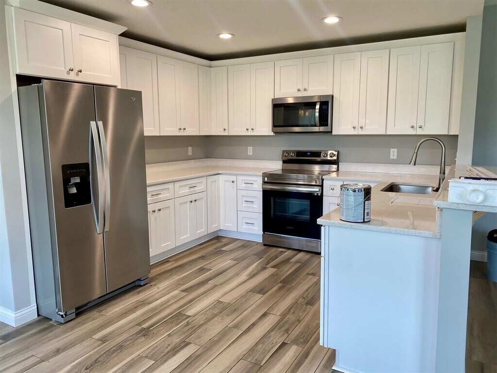 Gorgeous like-new 4 bedroom brick home in Carter Crossings. This home features hard surfaces throughout - no carpet! The wonderful open plan has a kitchen with loads of quartz counter top space and a full suite of kitchen appliances. The bar seating overlooks the spacious living room with vaulted ceiling. The primary suite is light-filled and boasts a generous walk-in closet and stunning tile shower plus double bowl vanity. Each of the additional 3 bedrooms are large and share a huge bathroom with double bowls and tons of floor space. This split bedroom floor plan is perfect for letting everyone have their own space. You'll appreciate the LVP flooring running throughout with tile in the wet areas...that's right, no carpet here! This home is waiting for you!