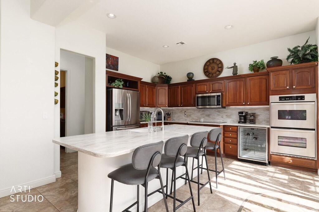 Welcome to this stunning single-level home in the vibrant community of Mesquite, NV, offering breathtaking golf course views and extensive community amenities. This home features 3 bedrooms and 2 bathrooms spread across a spacious layout that blends functionality with elegance. It can be rented fully furnished or unfurnished with a 1-year lease or longer. Step inside to discover a bright and welcoming interior with natural light, thanks to large windows and sliding doors leading out to a serene back patio. The open-plan living area with its comfortable seating and modern kitchen facilities, including a convenient breakfast bar and stainless-steel appliances. Each bedroom is well-appointed, while the main bedroom has direct access to the outdoors, ensuring a private retreat with beautiful views. The backyard is fully fenced in, enjoy the meticulously landscaped grounds on a generous lot, perfect for outdoor living and soaking in the peaceful views of the surrounding landscape and golf course. This home has access to Mesquite Vistas where you can enjoy the pool, gym and more! Casita not included. Make this your new home, apply today at or call to schedule a tour at