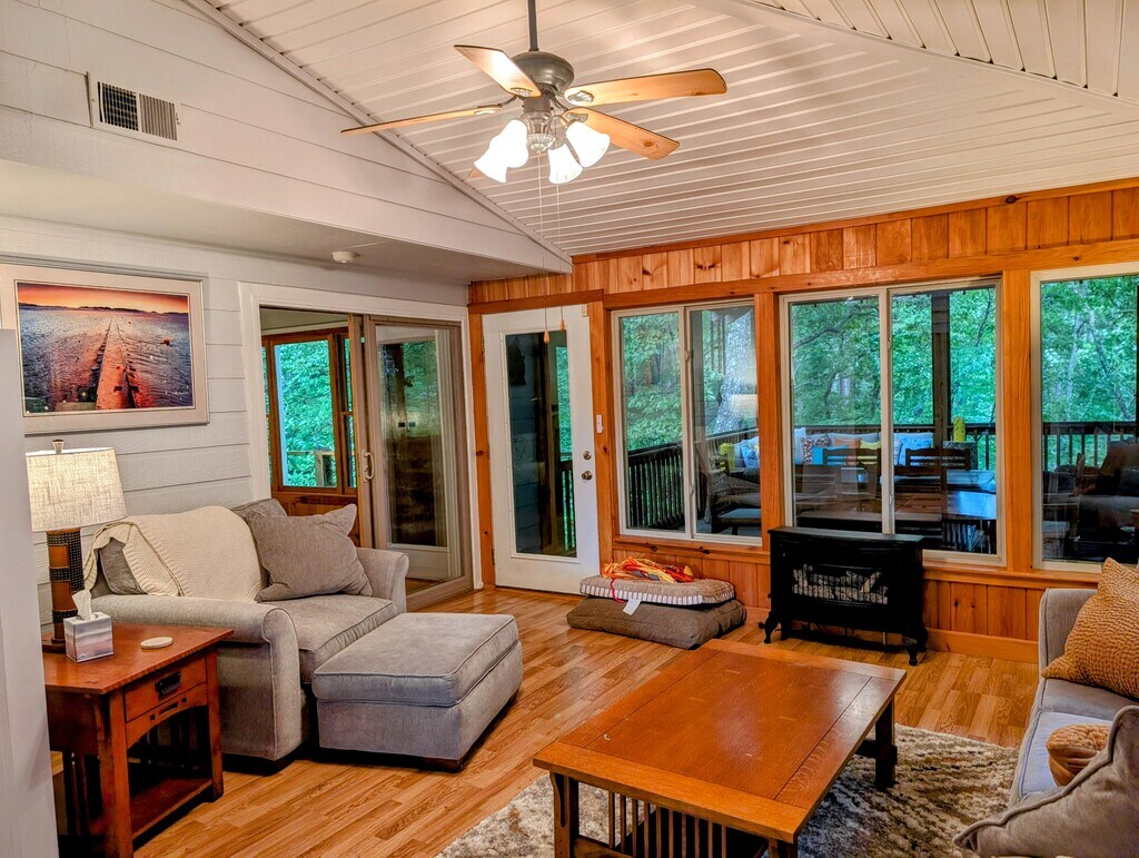 5 bedroom 3 full bath + 2 half baths! The Main Level of the Main House is equipped with a living room with a half bath and a gas fireplace, a full kitchen, and a dining room with a table that seats 8. It features a sunroom with plenty of seating and a gas fireplace, as well as a beautiful outdoor screened-in patio with a dining table that seats 6, with plenty of space for the whole family to lounge on the outdoor couch. Following the back deck down, there is a hot tub that seats 4-6 adults. Continuing across the ramp will bring you to the Guest House Apartment. Upon entering the Guest House Apartment, there is a full kitchen, a cozy living room with plenty of seating on the couches, and a TV, as well as a dining table that seats 4. This area of the home has one bedroom with a queen-sized bed and a full bathroom. Below the Guest House Apartment is a game room with a pool table, a TV, and plenty of space to lounge around. This area of the house features a queen-sized bed as well as a full-sized futon. Through the sliding glass door, there is a seating area with a fire pit table to enjoy. Listen to the creek or some music on the Bluetooth speakers on the screened porch, enjoying the mountain views on the front porch, or take a short walk down the road to a charming garden and sit on the swing for two. This property is just minutes from downtown, only 1.2 miles off of Main Street! Downtown Clayton is filled with locally owned shops offering handmade crafts to artisanal foods. You'll find many wonderful eateries, earning the title of the Farm to Table Capital of Georgia, along with countless outdoor adventures, just a short trip away. Utilities Included - $5,000 - 1 Month Lease Each Tenant over the age of 18 is required to submit an Application that includes Previous Rental History, Employment History, References, Credit Report, and Background Check. If the Application is approved, a $500.00 Lease Deposit is required to draft the Lease Agreement for electronic review and signature. The $500 Lease Deposit is applied towards First month's rent. In the event Tenant(s) decide not to proceed with signing the Lease Agreement after the draft has been sent for E-Sign, Tenant(s) forfeit the Lease Deposit. First month's rent, Last month's rent, Security Deposit, and Non-Refundable Pet Fee in the amount of $300 per pet (if applicable) are due (7) days prior to your Lease Start Date. All remaining monthly payments are due on the First of the Month. Tenants are required to provide the following (7) days prior to your Lease Start Date. 1. Renter's Insurance 2. Confirmation of Utility Services Ordered to include when applicable (Electric, Water/Sewer, Internet, & Gas). A list of utilities will be provided in the lease agreement for your reference.