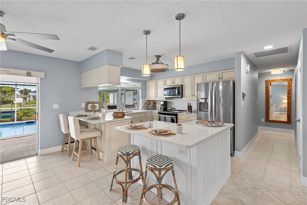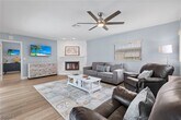 This is a VACATION RENTAL only. Owner will not consider an annual rental. Weekly rentals are permitted. Welcome to Villa Florence! This cozy 3-bedroom,2-bathroom split-floor plan home is perfect for your family as it gives two completely separate living areas for you and the kids! This beautifully decorated home sleeps 8 guests when using the two sleeper sofas available. Located on a gulf access canal - minutes to the river - in the coveted SW area of Cape Coral,you are close to downtown where there is plenty of shopping,bars and restaurants. You're also a quick drive over the bridge to historic Fort Myers and the famous SWFL beaches such as Fort Myers Beach,Sanibel and Captiva Islands. Villa Florence offers two separate living areas on either side of the house. The main living room is directly off the master bedroom toward the left of the home,and offers a sleeper sofa,an additional couch and a 65" flat-screen TV. The secondary living room is off of the two guest bedrooms on the right side of the house. It features a second sleeper sofa as well as additional seating,a fireplace,a flat-screen TV and double sliders with views of the pool area. There is now a full dining table that seats 6 guests that is located off the kitchen! The fully equipped kitchen is toward the rear of the house and offers stainless steel appliances and two islands with seating for four guests. There is an additional smaller dining area off to the side that has seating for two more. The kitchen features a traditional drip coffee maker. The master bedroom is located on the left of the house off the main living room and offers a King-sized bed,flat-screen TV and a decorative chair. The sliders give you private access to the pool area with views of the water. The attached bathroom features a double-sink vanity and an oversized walk-in shower with gorgeous marble tile. The two additional bedrooms are located off of the secondary living room on the right side of the house. The first room features a Queen-sized bed,flat-screen TV and private door to the pool area. The second bedroom features a Twin-sized daybed and flat-screen TV. Both guest rooms share the second bathroom,which has another spacious shower with rainfall showerhead. You will no doubt spend most of your time outside by the pool,and Villa Florence's lanai is the perfect place to do just that! The electric-heated pool is perfect for swimming year round. With plenty of seating available,the whole family can spend their time soaking up the Florida sun. There is a full dining table setup with room for 6 guests available to enjoy your meals poolside. Head down to the dock and enjoy a cocktail under the Tiki Hut (the boat lift is not available for tenant use). If you're feeling adventurous,take a trip around the neighborhood by using the bikes or kayaks available! All in all,Villa Florence is a perfect getaway location for your next family trip. Book it now!