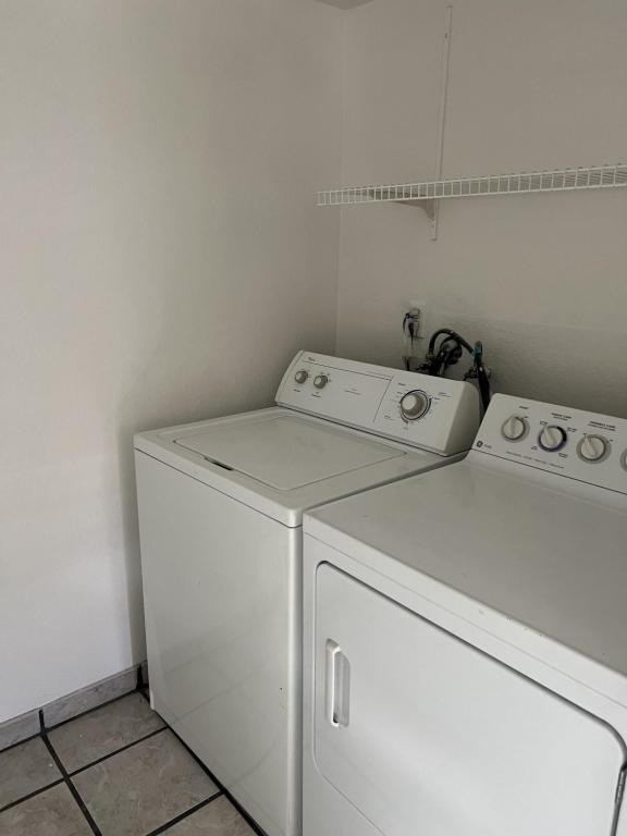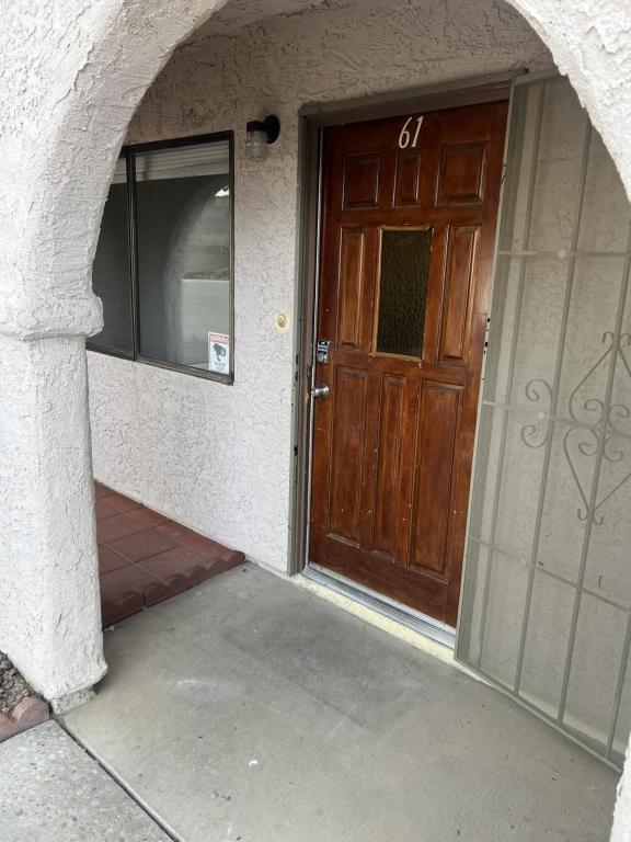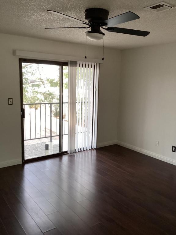 Lovely, 2 level townhome style condo. Featuring 2 bedrooms and 1 full bath upstairs and 1/2 bath for guests, downstairs. Laminate flooring throughout. Tile in the kitchen and dining room. Private yard w/covered patio and storage. Washer and dryer in unit. Large primary bedroom w/balcony, overlooking the front. The community features a pool, spa, tennis and basketball courts. Excellent location, near schools, restaurants, stores and minutes from the Strip. Available now.