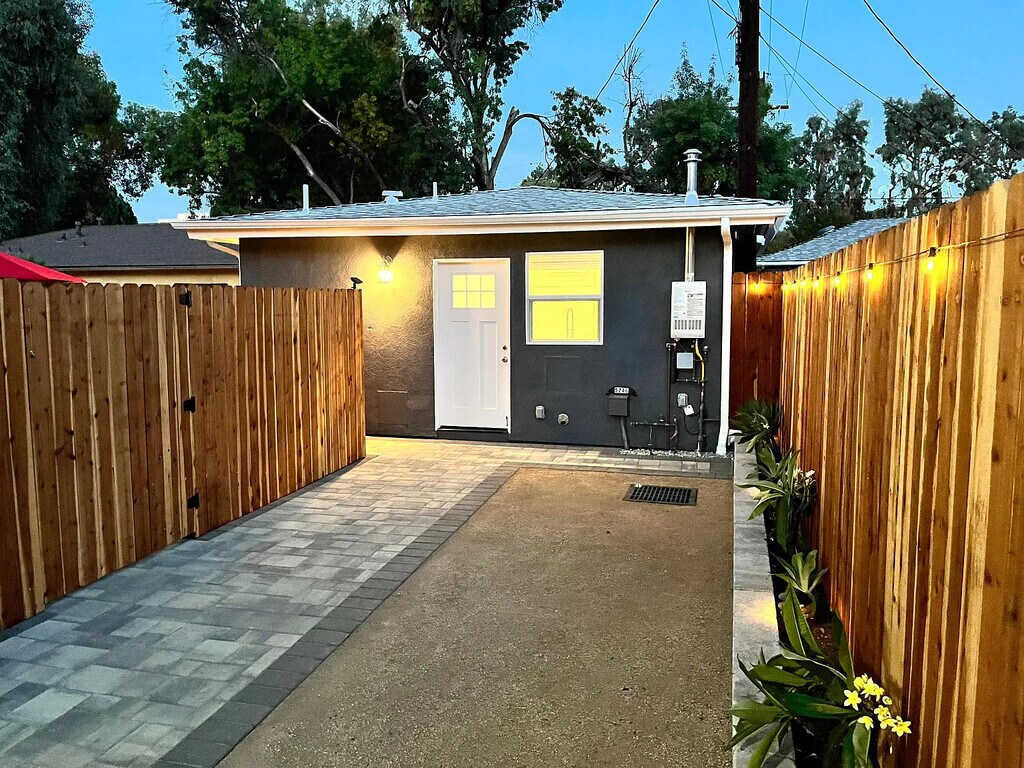 PLEASE READ CRITERIA BEFORE INQUIRING. AVAILABLE 1/1/26. SINGLE OCCUPANCY ONLY. WILL ONLY CONSIDER APPLICANTS WITH EXCELLENT/VERY GOOD CREDIT, PROOF OF INCOME & ADEQUATE RESERVES. MAY CONSIDER SMALL DOG. NO SMOKING. NO SUBLETTING. MINIMUM 1 YEAR LEASE. ALL APPROVALS ARE CONDITIONED UPON A PHYSICAL INSPECTION OF THE UNIT. DO NOT GO DIRECT. APPOINTMENT TO VIEW WILL ONLY BE MADE AFTER A PRE-SCREEN PHONE INTERVIEW. If you're looking for privacy and outdoor space, this is the one. Newer built, detached 400 sq. ft. Studio ADU (Accessory Dwelling Unit) designed for one person, with no shared walls and an abundance of natural light. Located south of Ventura Blvd in the highly desirable area of Woodland Hills, this unit features an off-street parking spot, private gated entrance with its own address, in-unit washer & dryer with linen closet, wardrobe closet, high ceilings, recessed lighting, quartz countertops, under-mount stainless steel sink, smart appliances, mini-split HVAC system, brushed nickel fixtures, tankless water heater, skylight, and polished concrete floors throughout. Enjoy your own gated and private outdoor living space with large paved patio and decomposed granite, plus a large planter perfect for growing herbs and vegetables. Mature lemon and orange trees on the property add to the serene atmosphere. Walking distance to excellent dining and shopping along Ventura Blvd, close to the 101 freeway and public transportation. Water included with lease.
