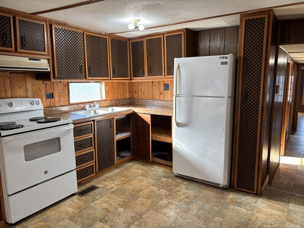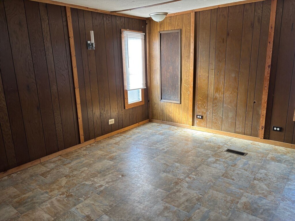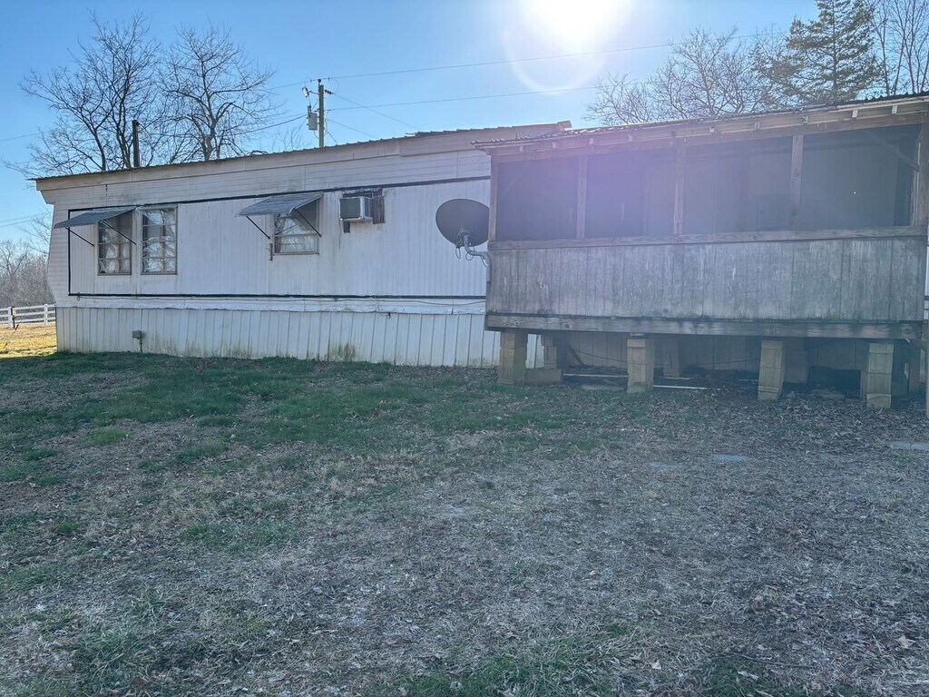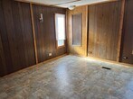 2 bedroom, 1 bath trailer. Sits up on a hill for privacy with a nice big yard. Washer and dryer hookup on the back enclosed porch. Large open living room. eat-in kitchen has stove and refrigerator. Central Heat unit and window AC's. 2nd bedroom is small. Bathroom has double sinks and a bath/shower combo. Large master bedroom. All laminate flooring. Tenant responsible for lawn up keep.