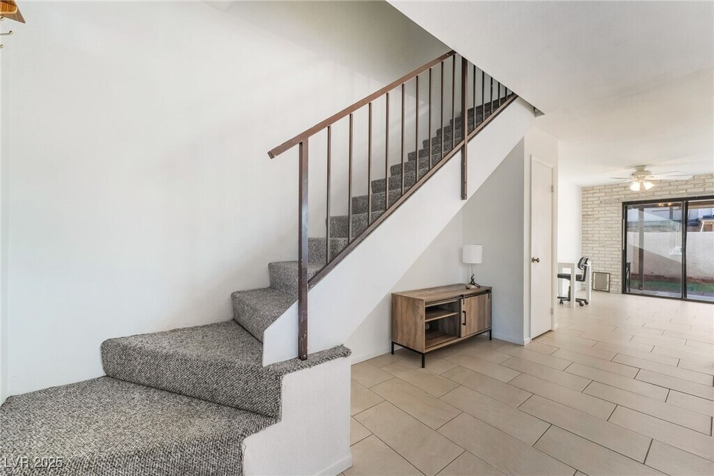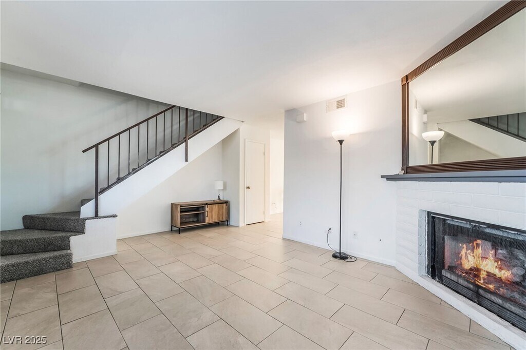 Immaculate two bedroom, two story town home style condo. Partially furnished for convenience and immediate move in. Fireplace, patio cover, and front balcony with some nice Las Vegas views. Blinds, ceiling fans, and washer/dryer included. highly upgraded bathrooms, countertops, tile flooring and recently installed carpeting. Super convenient to shopping and retail, schools, the strip, highways,, airport and public transportation and restaurants. HOA includes pool, spa, and playground. PETS CONSIDERED PER HOA GUIDELINES