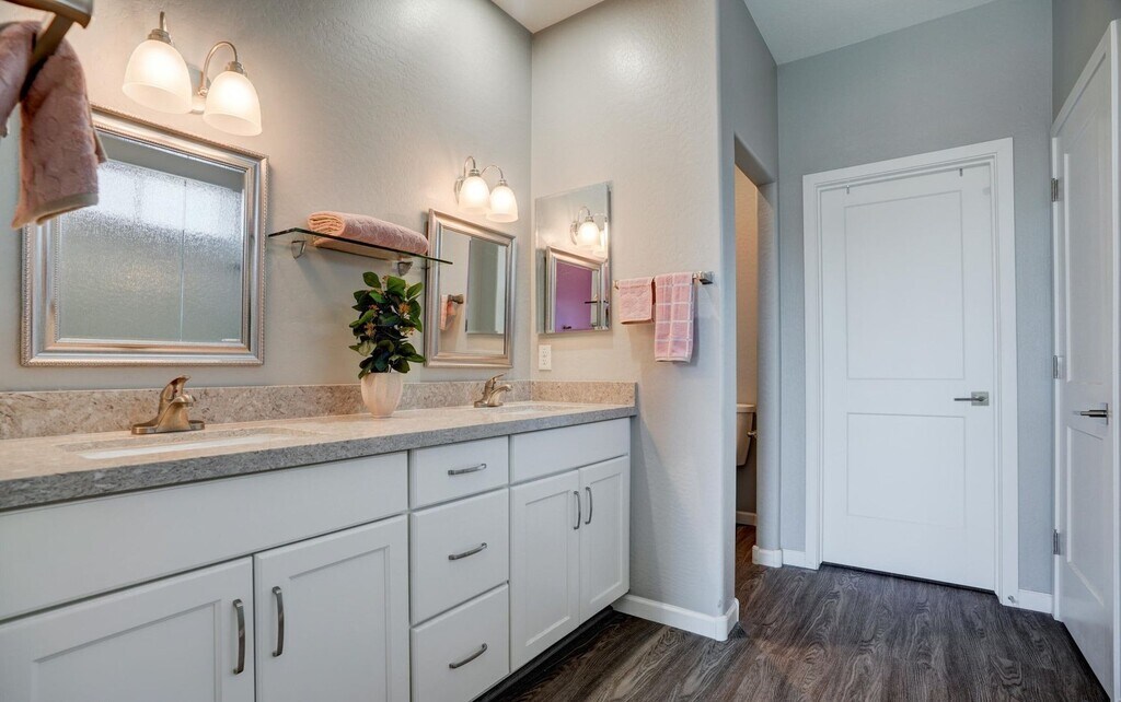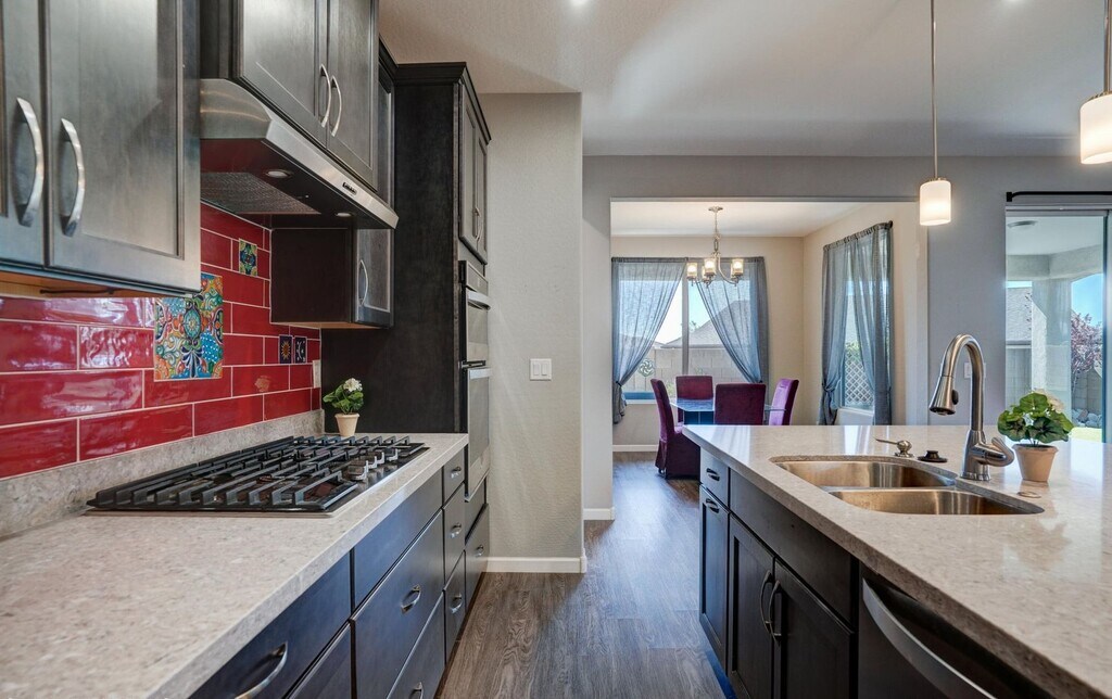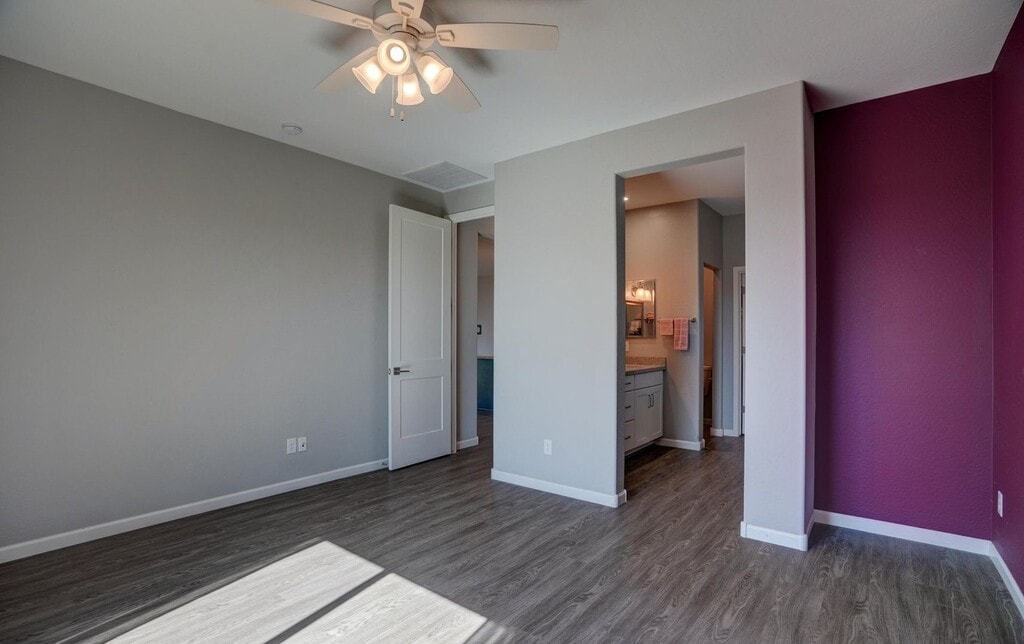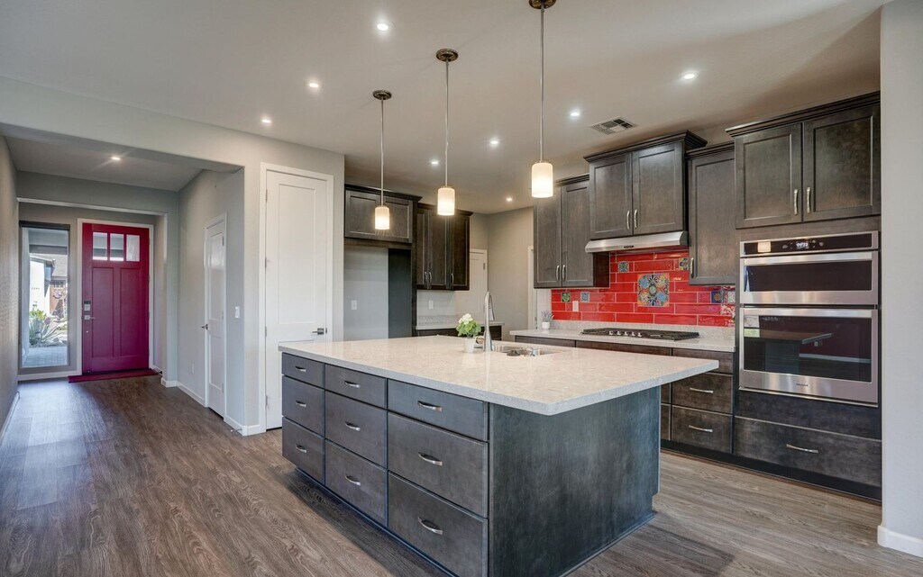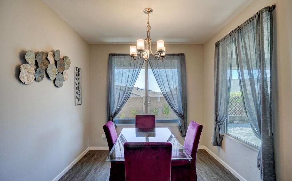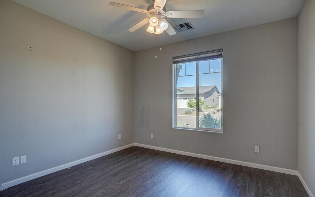 Three bedroom split floor plan home you will be proud to call home! Gorgeous kitchen with island overlooking the living room and dining room. Two guest bedrooms and guest bathroom at the front of the home, with master quite off of the kitchen featuring double sink vanity, step-in shower, toilet room and walk-in closet. Spacious, private fenced yard with covered patio and extended pavers. Pretty wood laminate flooring throughout, no carpet. Laundry toom with cabinets, hanging rod with shelf and folding counter. The home is on solar. Tenants pay solar fee + APS usage, gas, water, sewer, and trash. Non-smoking property. Students welcome. Community amenities not included at this time. Max 2 animals over 3 years old (AAO excepted) - Deposit of $250.00 per animal required, plus Insurance and $25/mo/animal pet rent required. All occupants 18yrs+ must complete an application AND complete screening on Application Fee $45/adult + $10/mo Maintenance Call Center Fee + $12/mo Filter Fee + $50 Admin Lease Fee (one time).