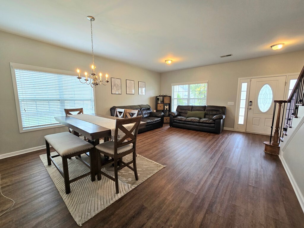 Welcome to this stunning home centrally located just off Patriot Pkwy,close to Shaw and town! Open floor plan with formal front sitting area & formal dining. Huge great room with built in shelves (gas log FP - does not work). Kitchen features granite c/t,breakfast bar island,walk in pantry,stainless appliances with breakfast area. Home offers tons of storage. Laundry room & half bath located off the kitchen. Covered 12 x 12 patio,fenced backyard & irrigation. Easy to maintain LVP flooring flows throughout the downstairs while upstairs boasts plush carpet. All bedrooms are upstairs and 3 of the 4 have walk in closets. Huge owners suite with nursery or sitting area,two large walk in closets. Spacious bedrooms. Pet friendly w/owner approval. Available on 3/30/26,appt. needed to view.