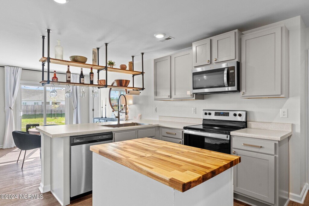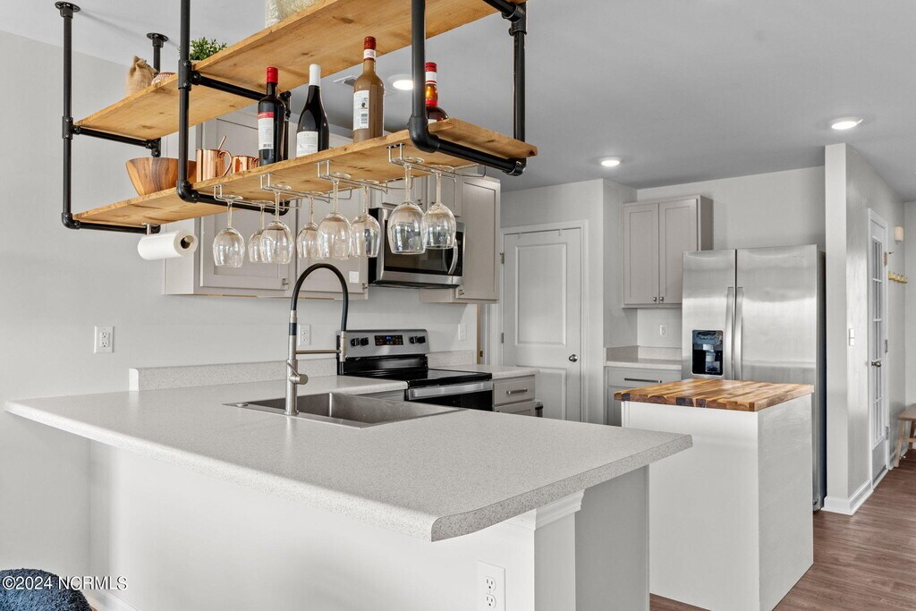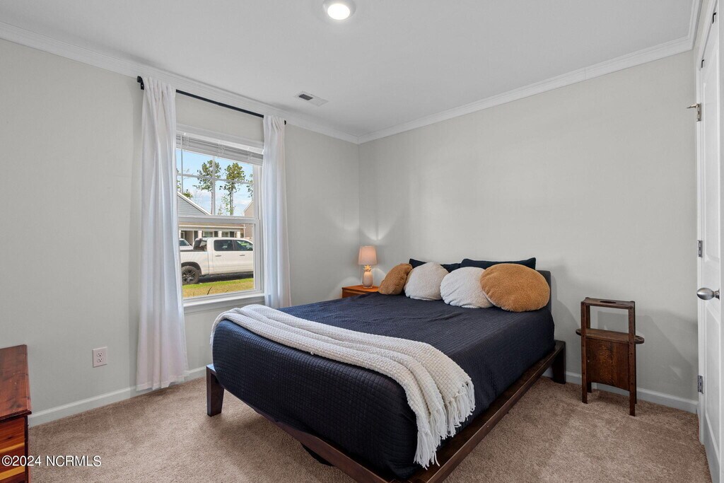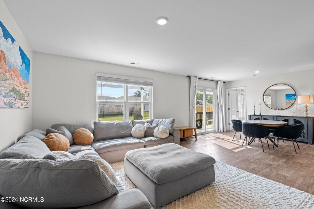 et ready to be blown away by the sheer magic of this single-story sanctuary, where size takes a backseat to sensational living! Step into a fenced-in yard paradise that's not just pet-friendly but practically pet-heaven, offering boundless opportunities for furry friends to frolic and play.Nestled in the heart of a vibrant new community neighboring Coastal Elementary, this home is the epitome of convenience meets tranquility. With a quick 5-minute drive to HWY 17 and just 15 minutes from Stone Bay or the Camp Lejeune Sneads Ferry gate, your daily commute transforms into a breeze.But it's not just about location; it's about community spirit. In Folkstone Heights, life is an endless adventure, with a bustling social committee that ensures there's never a dull moment. From neighborhood soirees to community events, there's always something thrilling happening just steps from your door.Inside, prepare to be wowed by the ingenious open-concept layout that defies expectations. This isn't just a 3-bedroom home; it's a masterclass in maximizing space without sacrificing style. The kitchen, the heart of the home, beckons with its clever ceiling overhang for extra storage--yours to keep and savor.Step outside into your private wonderland, where the possibilities are as vast as the starlit sky above. Whether you're toasting marshmallows by the fire pit, nurturing a garden, or simply reveling in the freedom of a fenced yard, every moment is an adventure waiting to unfold.And when it's time to retreat, the primary bedroom's ensuite beckons with its rustic charm, courtesy of a sliding barn-style door. Luxuriate in the walk-in shower or revel in the expansiveness of the walk-in closet--every detail has been meticulously crafted for your comfort and delight.