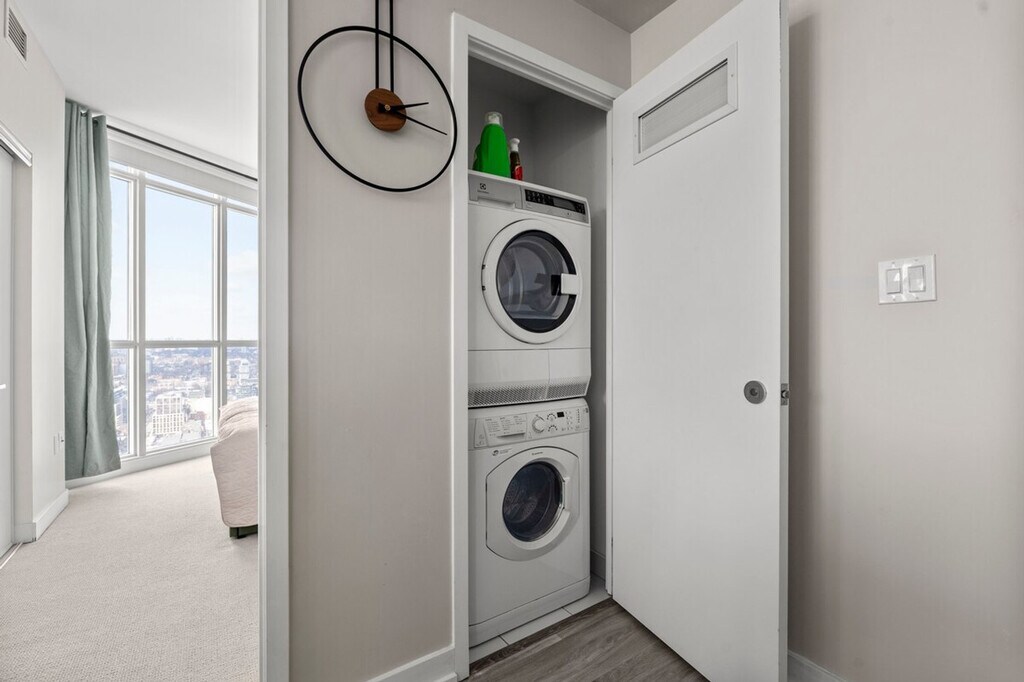 Feel at home in this cozy unit with a balcony, located in the heart of the downtown entertainment district on a high floor. Paid underground parking with in/out privileges is available upon request for $20 per night ($10 CAD if you book parking for 28 nights or more). A travel crib (for babies 0-18 months) and bed rails are available for $5 per item per night. Pets are allowed with a fee of $10 per pet per night. Please confirm availability for pets, the crib, and bed rails prior to booking. Enjoy easy access to the TTC, Union Station, Lake Shore, and Gardiner Expressway. This apartment is steps away from the CN Tower, Rogers Centre, Union Metro Station, Financial District, bars, restaurants, and Sobeys Grocery Store. According to the condo rules, information about all guests must be provided to the condo management prior to arrival, including names, ID details, and vehicle and license plate numbers (if parking is required). Guests whose names or ID do not match the information given are not allowed into the building. Guests must be 18 or over in order to check in. [SI]